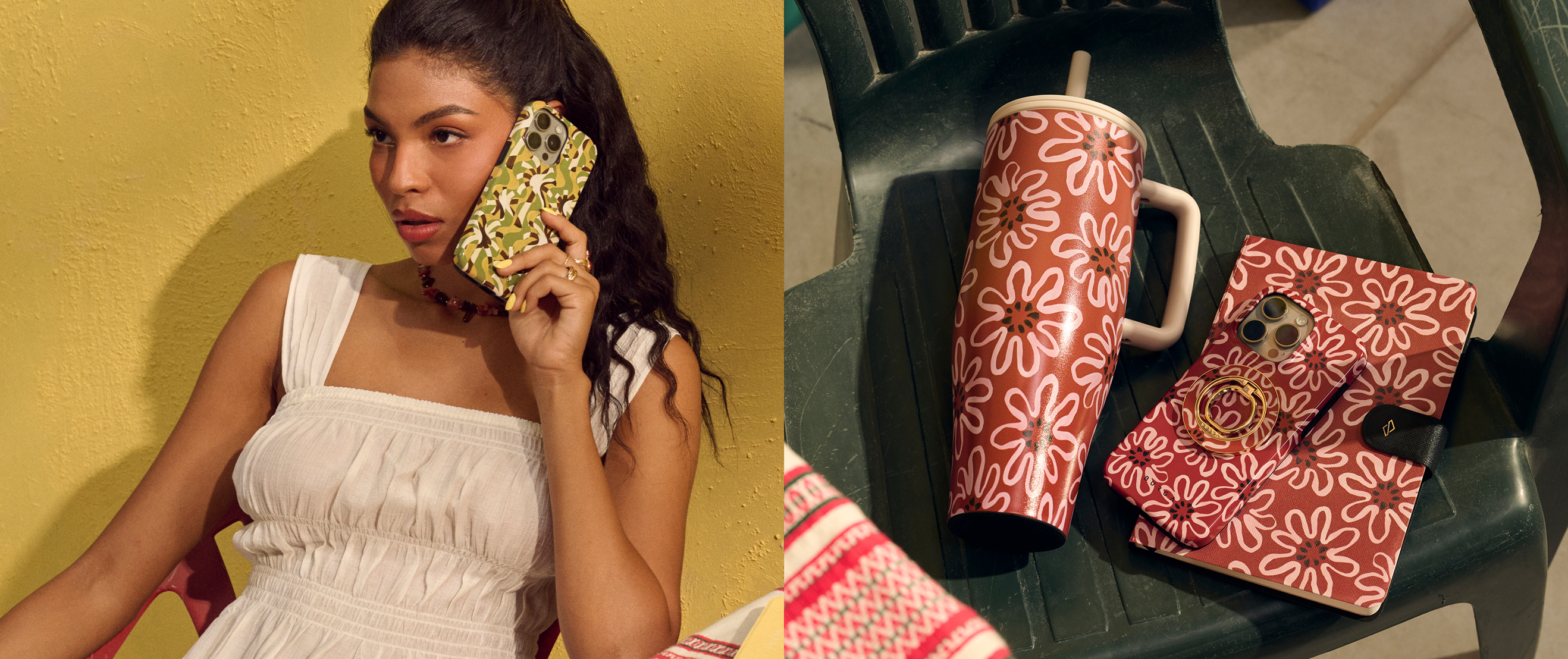 Person with megaphone, tropical fruits, and 'SAMBA' text on teal background.