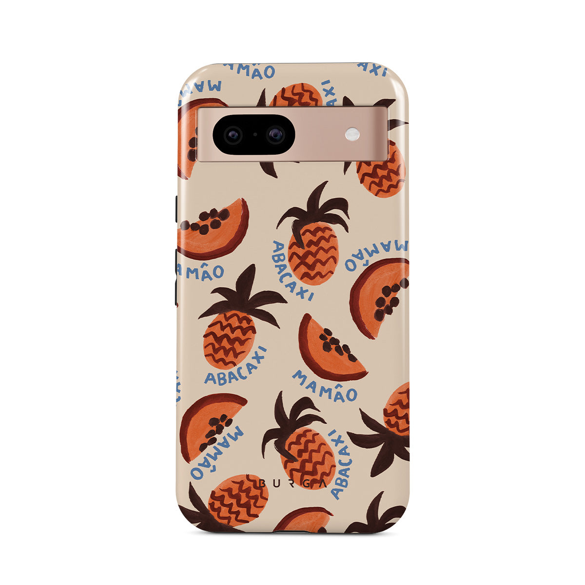 En este diseño: piña, papaya, patrón tropical