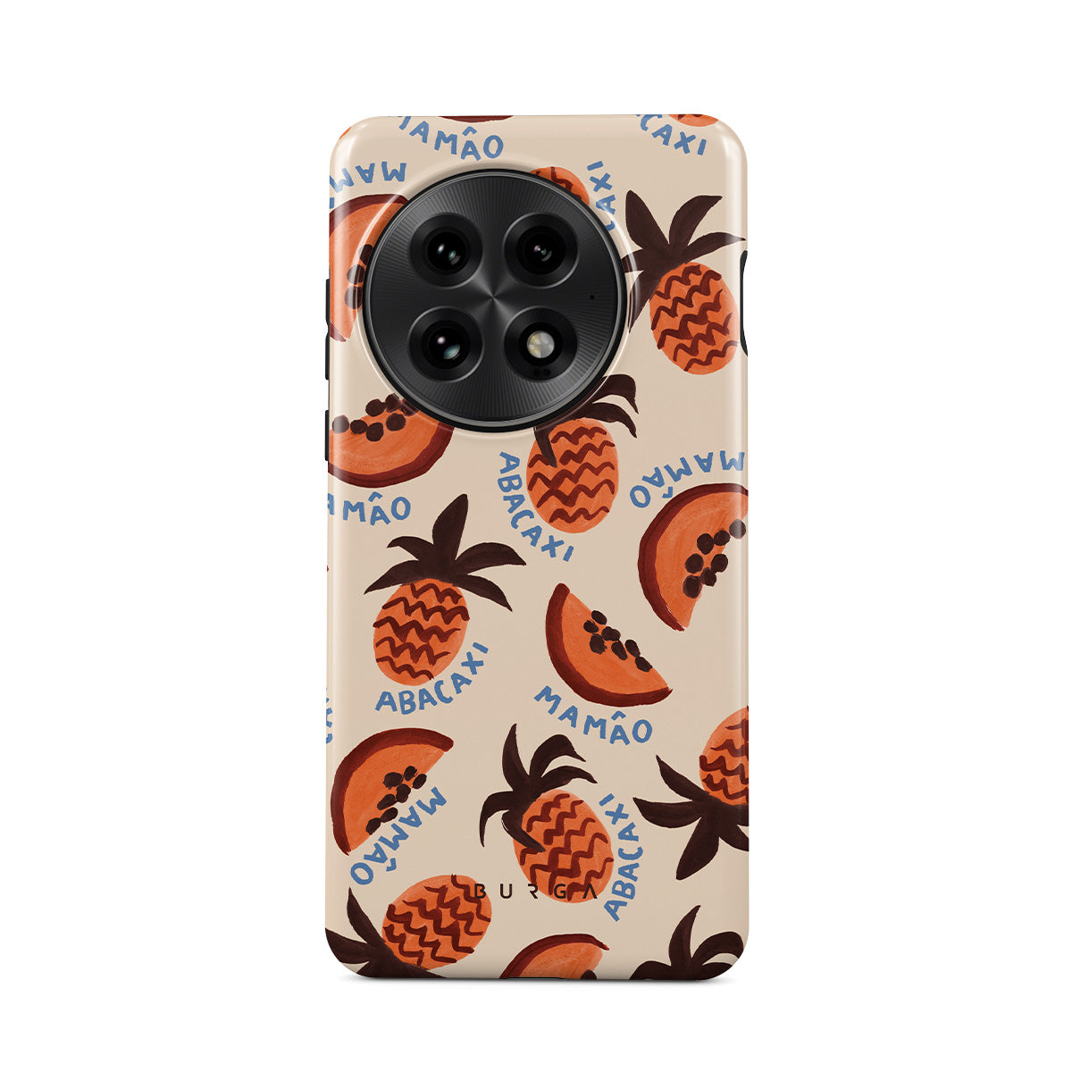 En este diseño: piña, papaya, patrón tropical