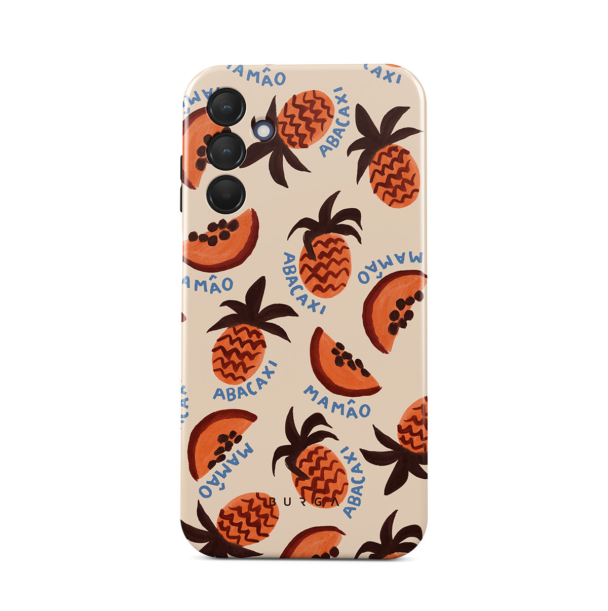 En este diseño: piña, papaya, patrón tropical