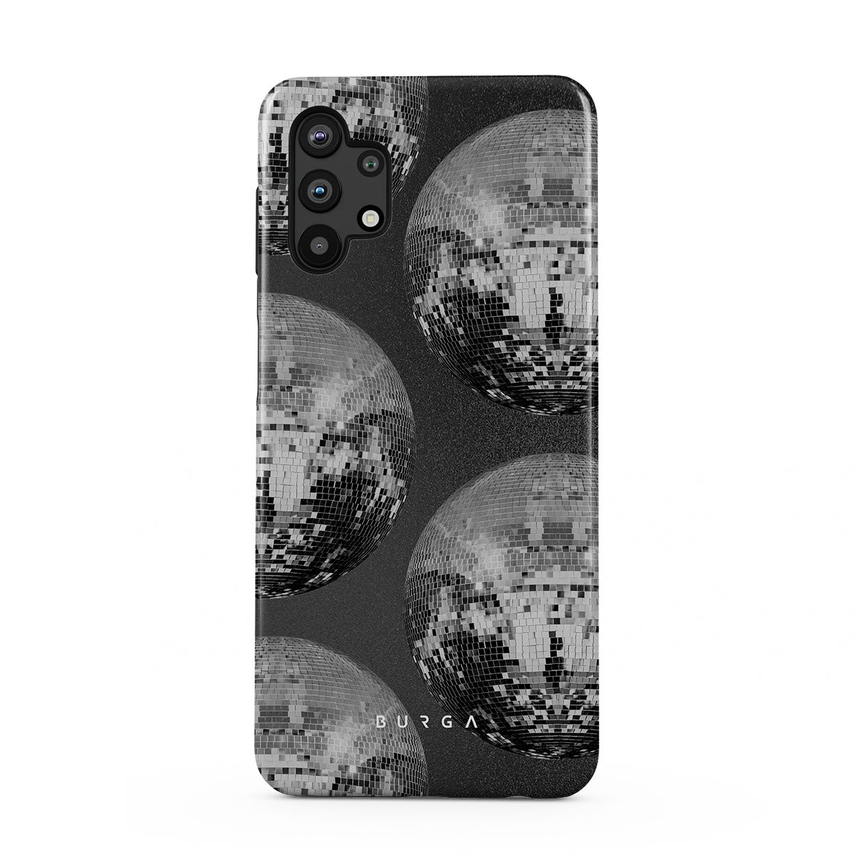 Este diseño presenta: bolas de discoteca brillantes.