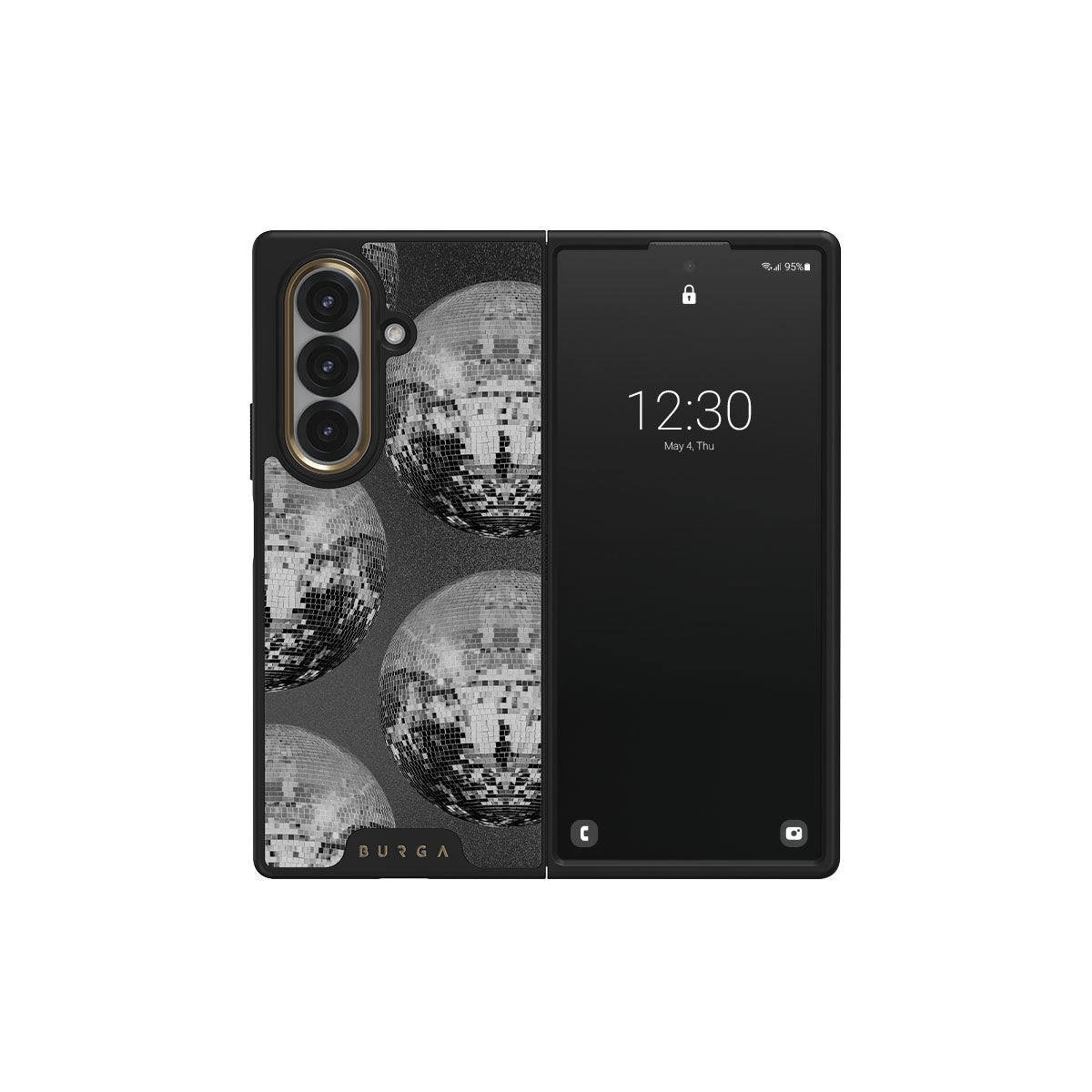 Este diseño presenta: bolas de discoteca brillantes.