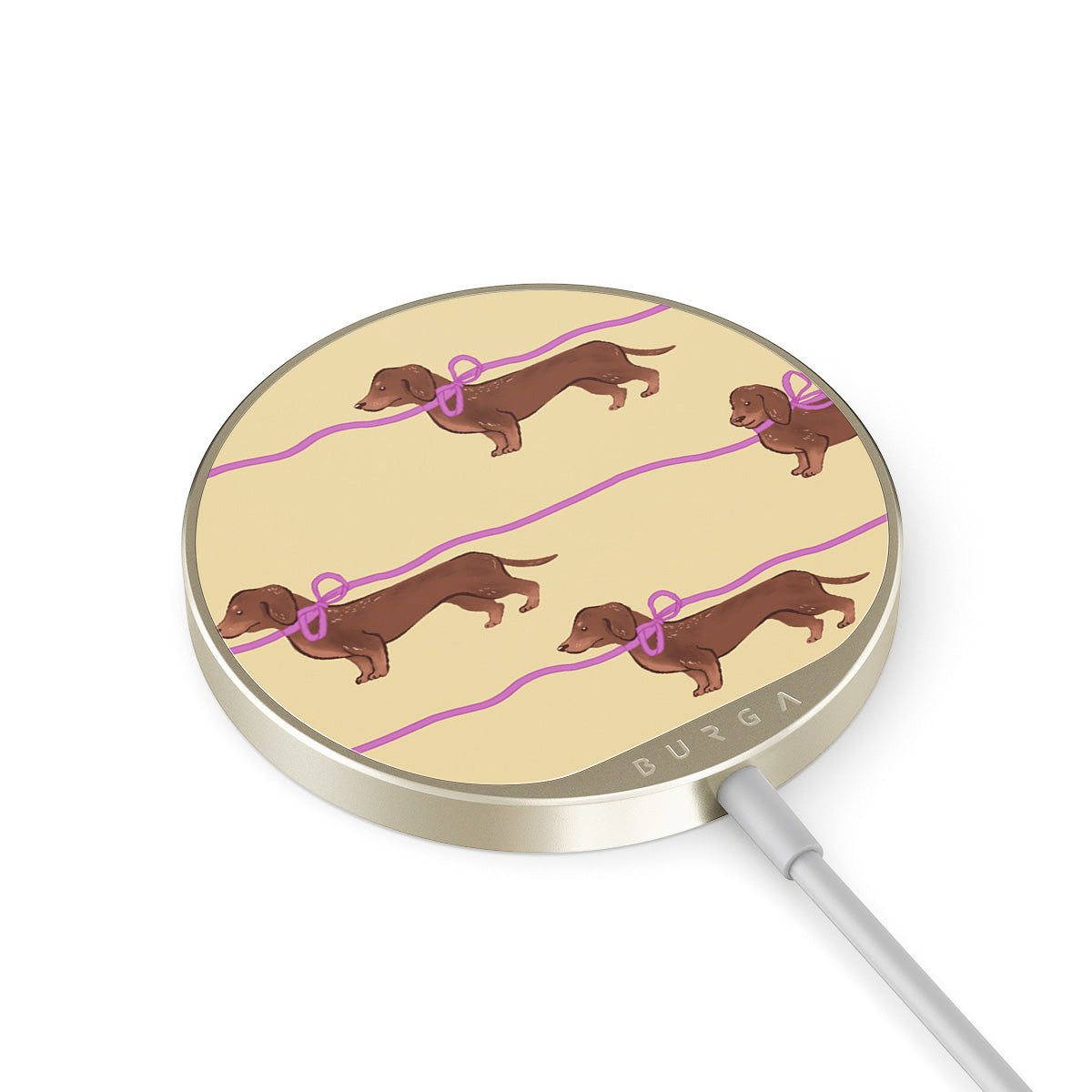 En este diseño: dachshunds con moños rosas, perritos adorables.