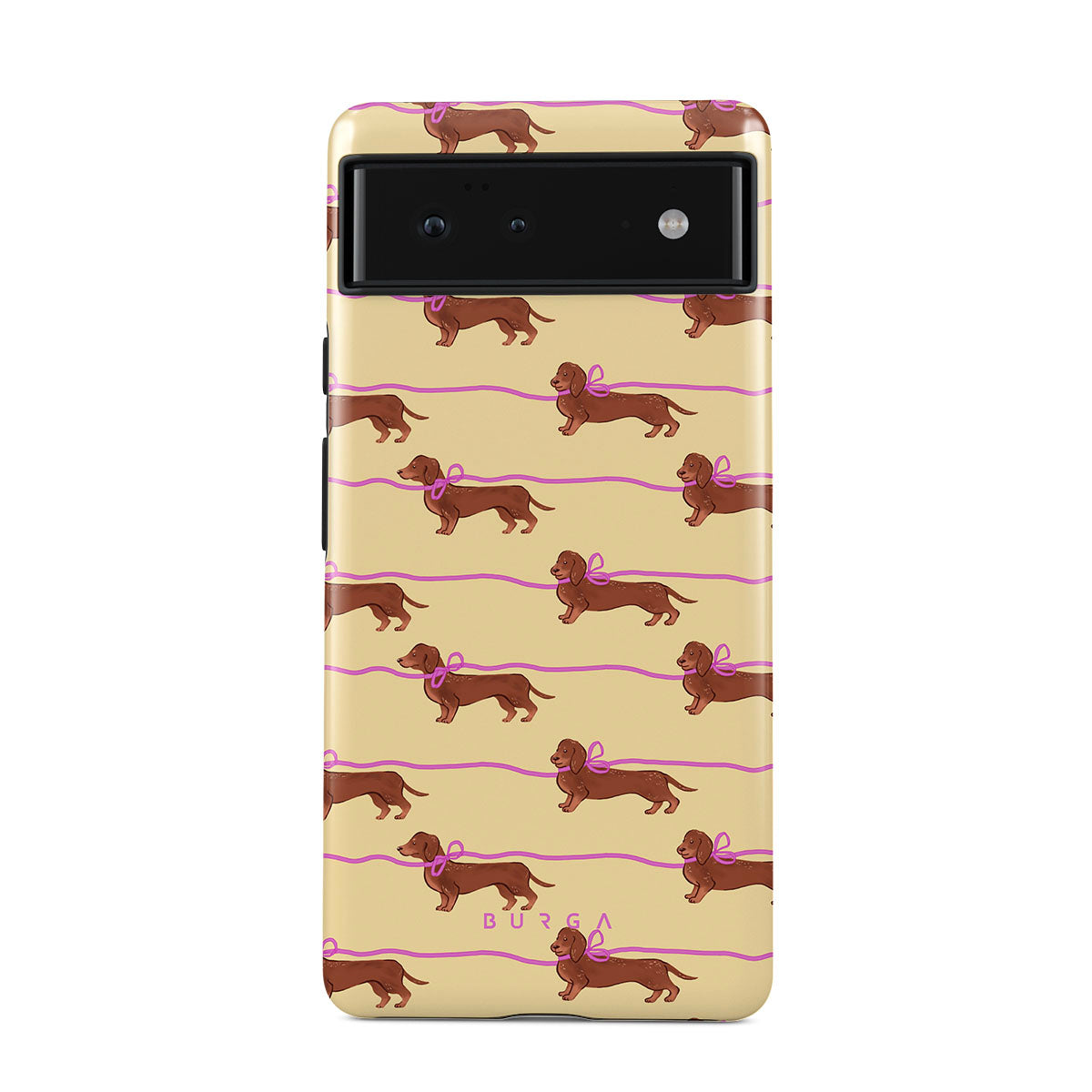 En este diseño: dachshunds con moños rosas, perritos adorables.