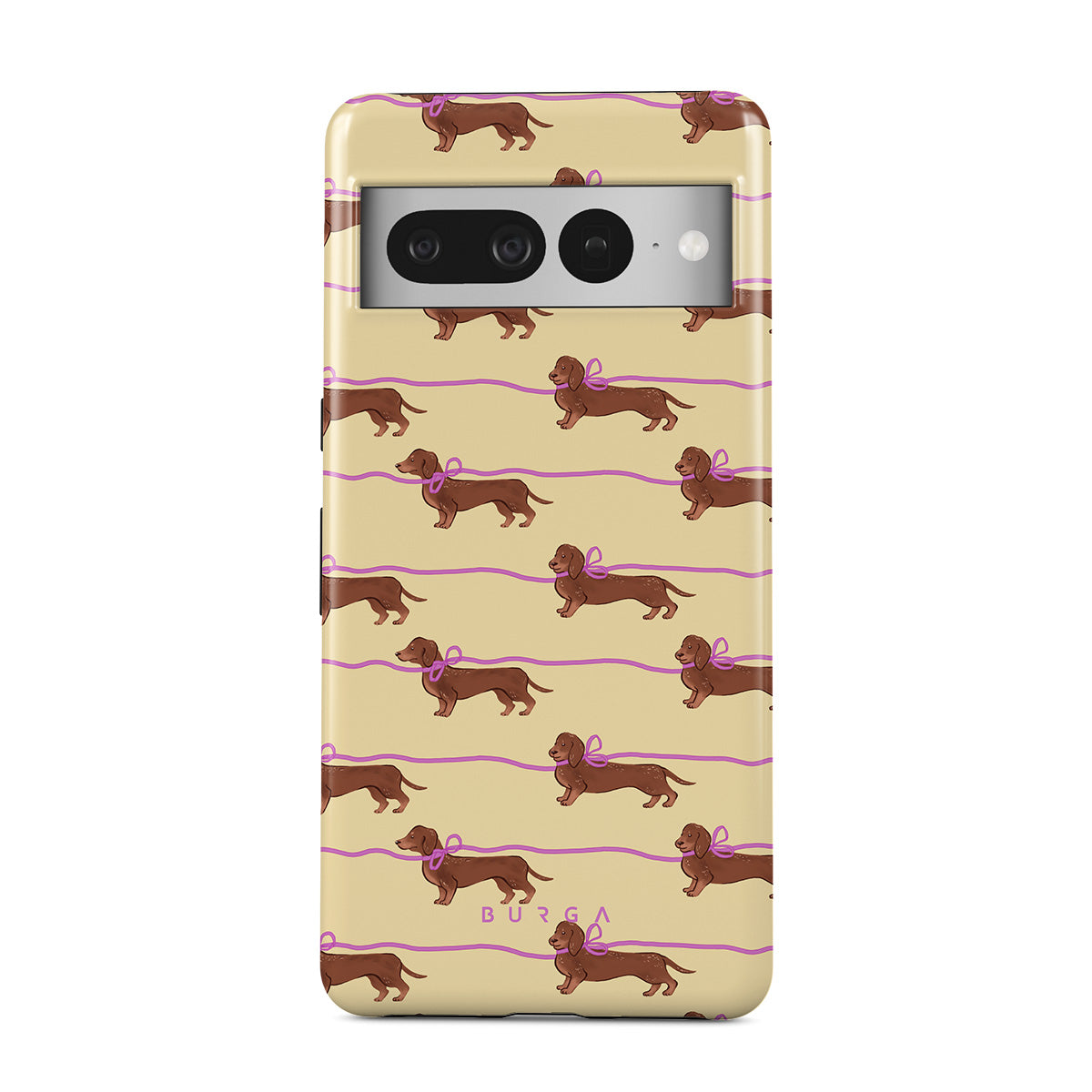 En este diseño: dachshunds con moños rosas, perritos adorables.