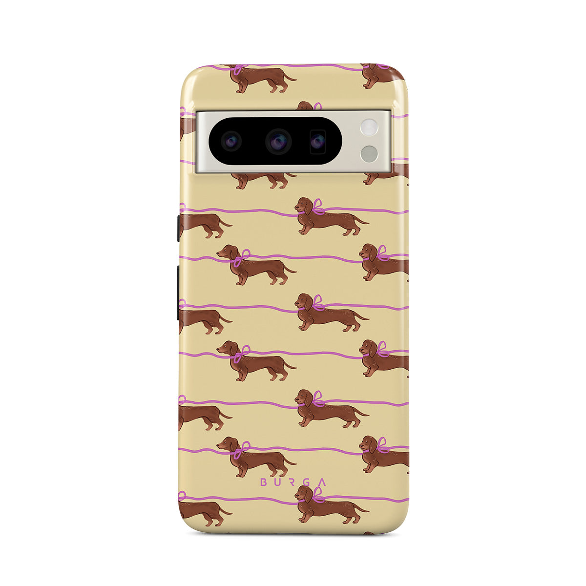 En este diseño: dachshunds con moños rosas, perritos adorables.
