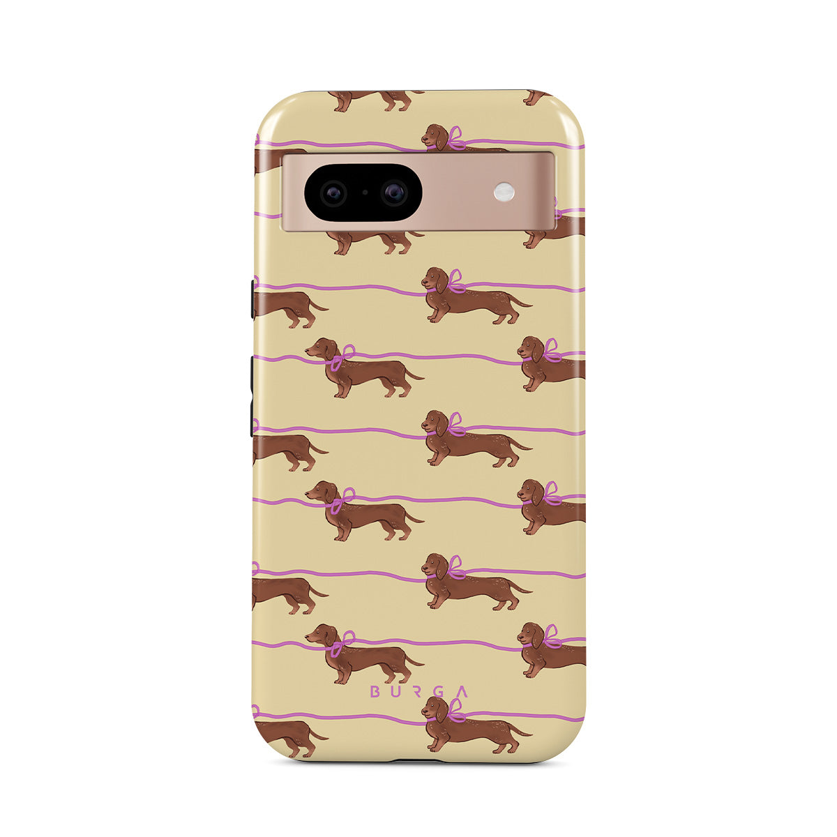 En este diseño: dachshunds con moños rosas, perritos adorables.