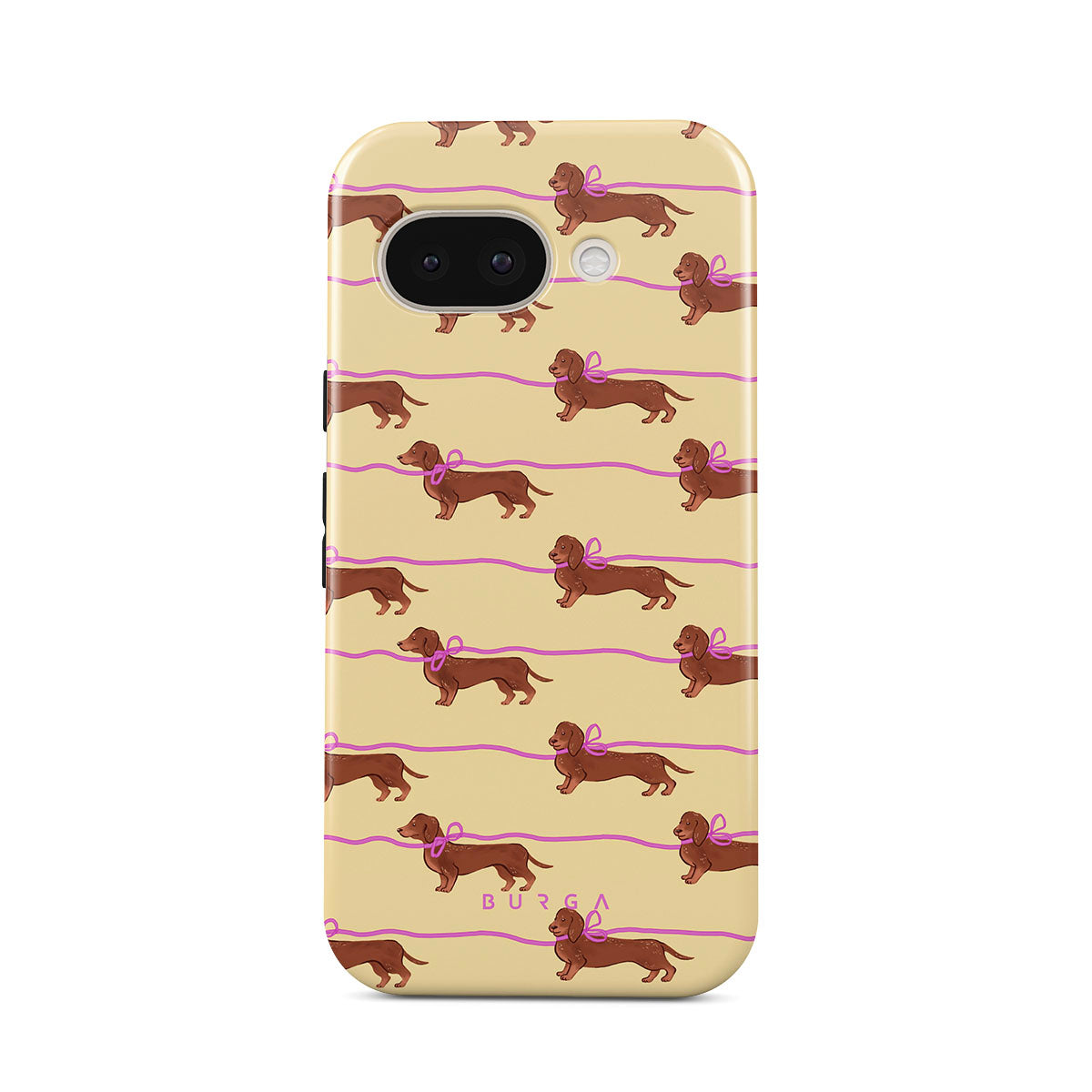 En este diseño: dachshunds con moños rosas, perritos adorables.