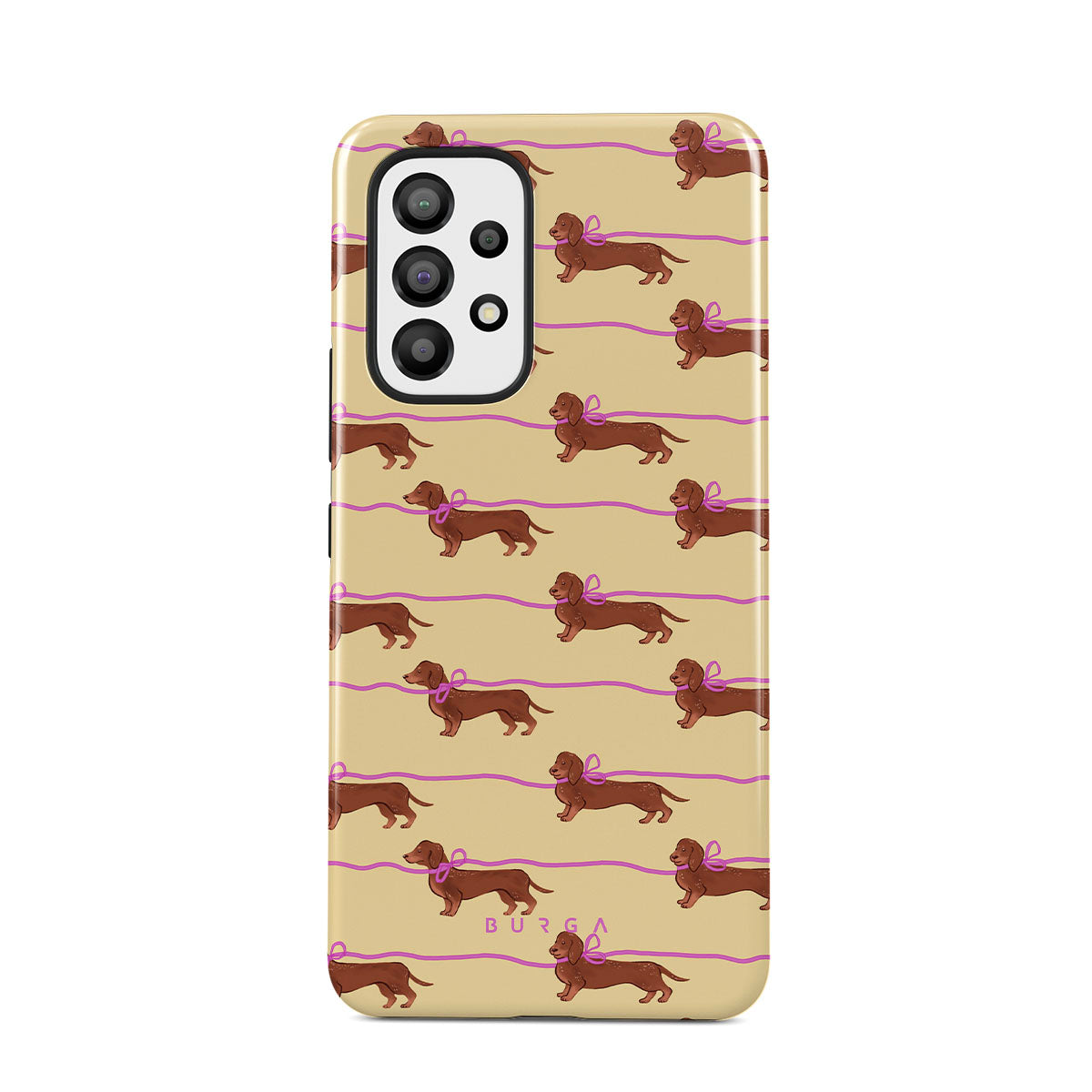 En este diseño: dachshunds con moños rosas, perritos adorables.