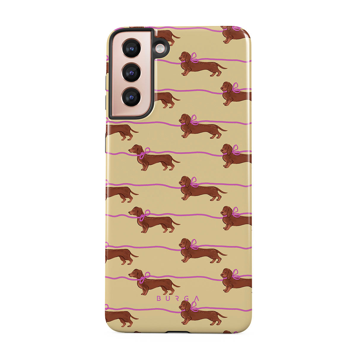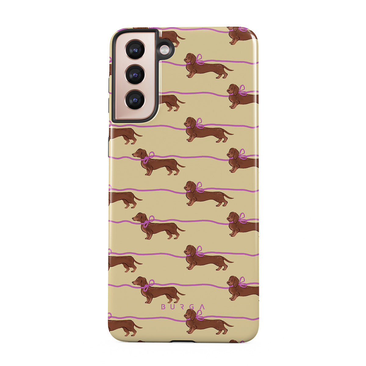 En este diseño: dachshunds con moños rosas, perritos adorables.