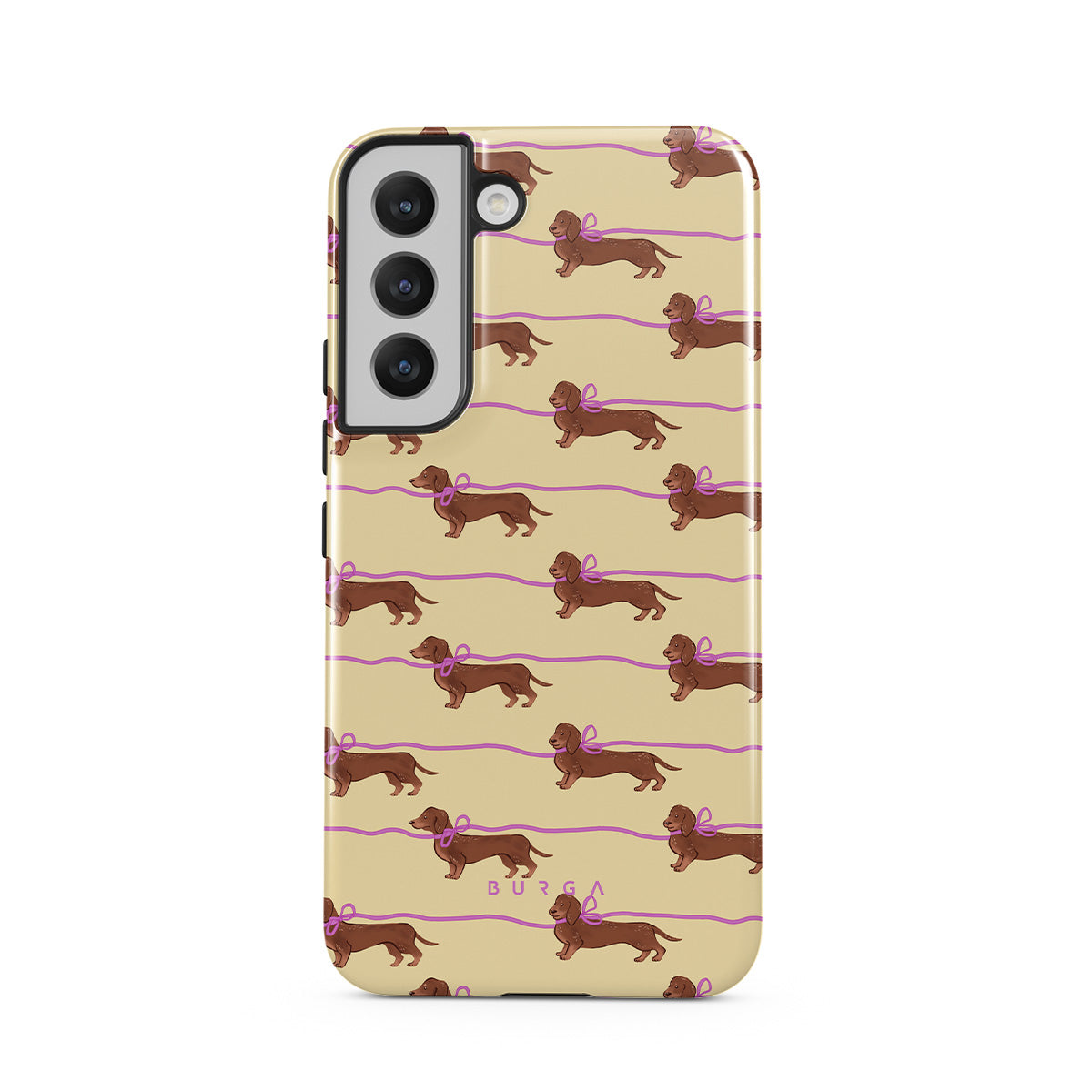 En este diseño: dachshunds con moños rosas, perritos adorables.