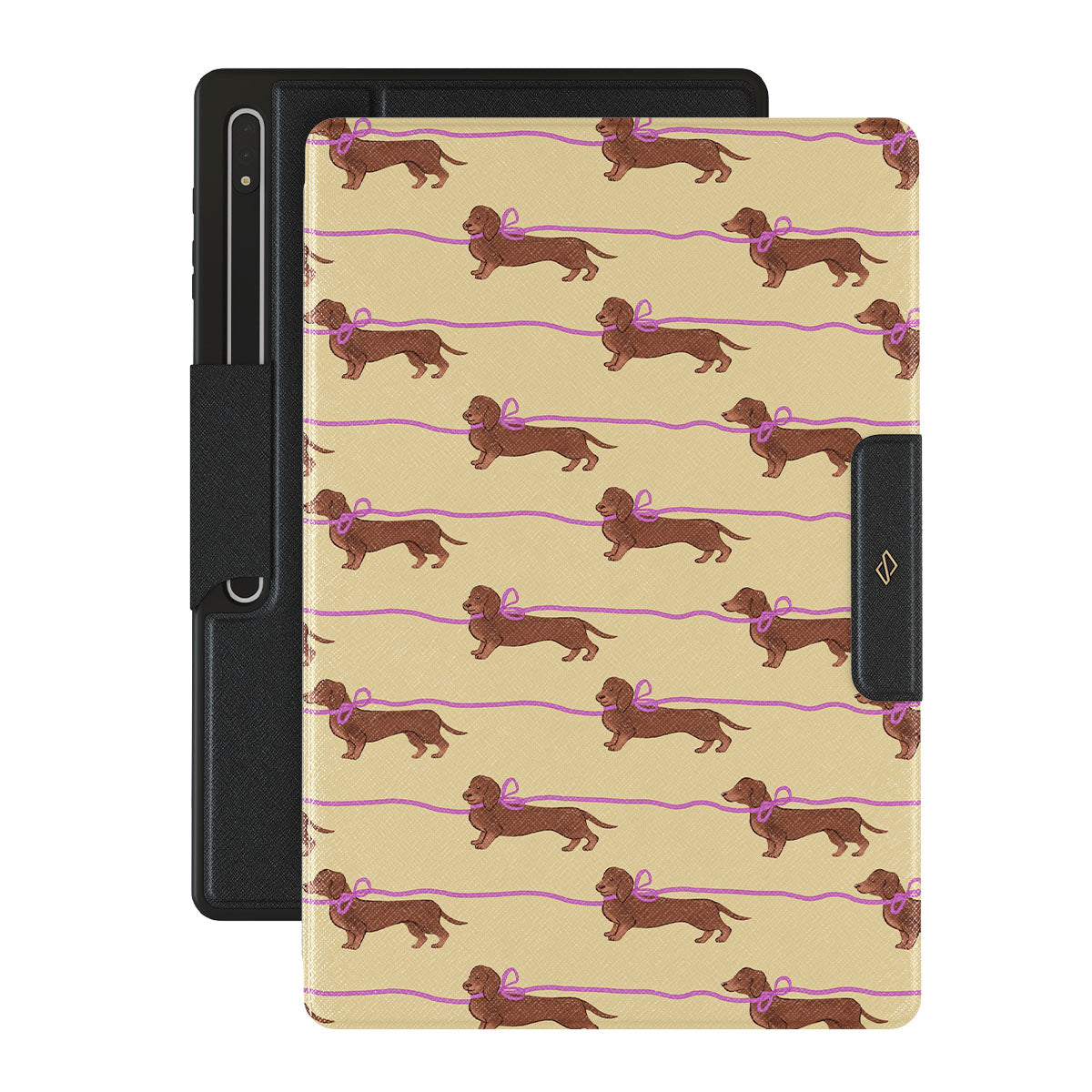 En este diseño: dachshunds con moños rosas, perritos adorables.