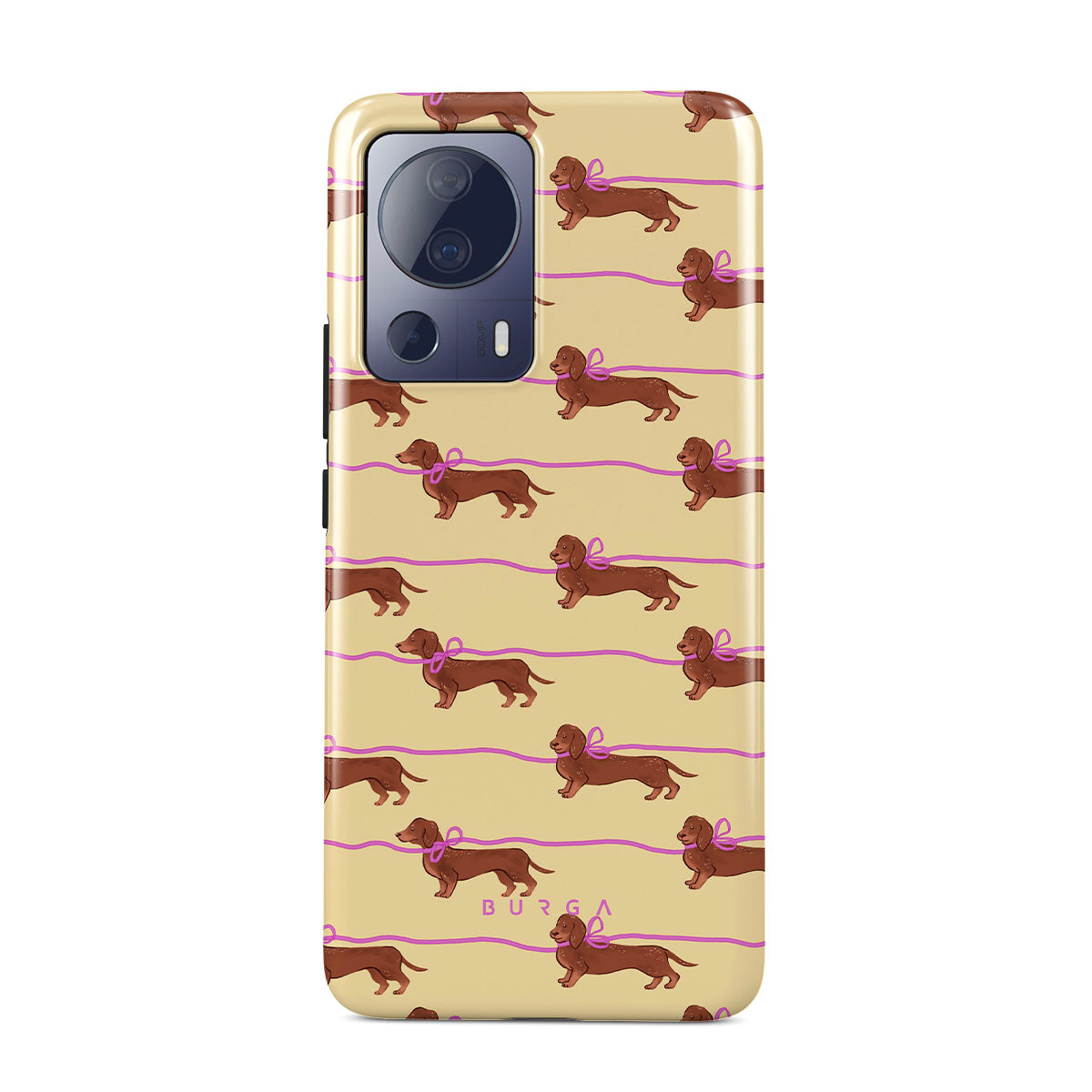 En este diseño: dachshunds con moños rosas, perritos adorables.