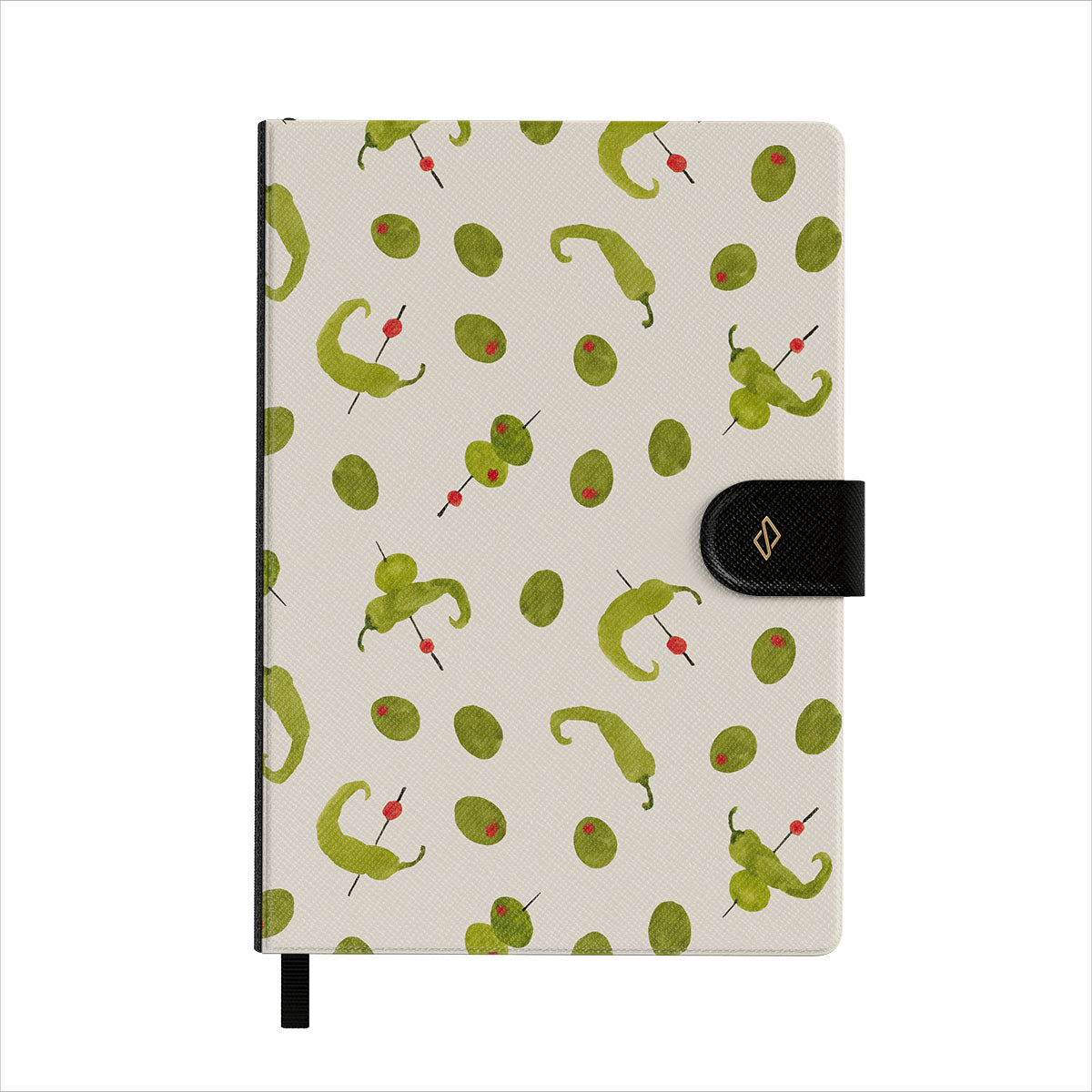 Presenta patrones BURGA bien detallados en una cubierta frontal de cuero sintético vegano. Rematado con un elegante marcador de página de cinta negra.