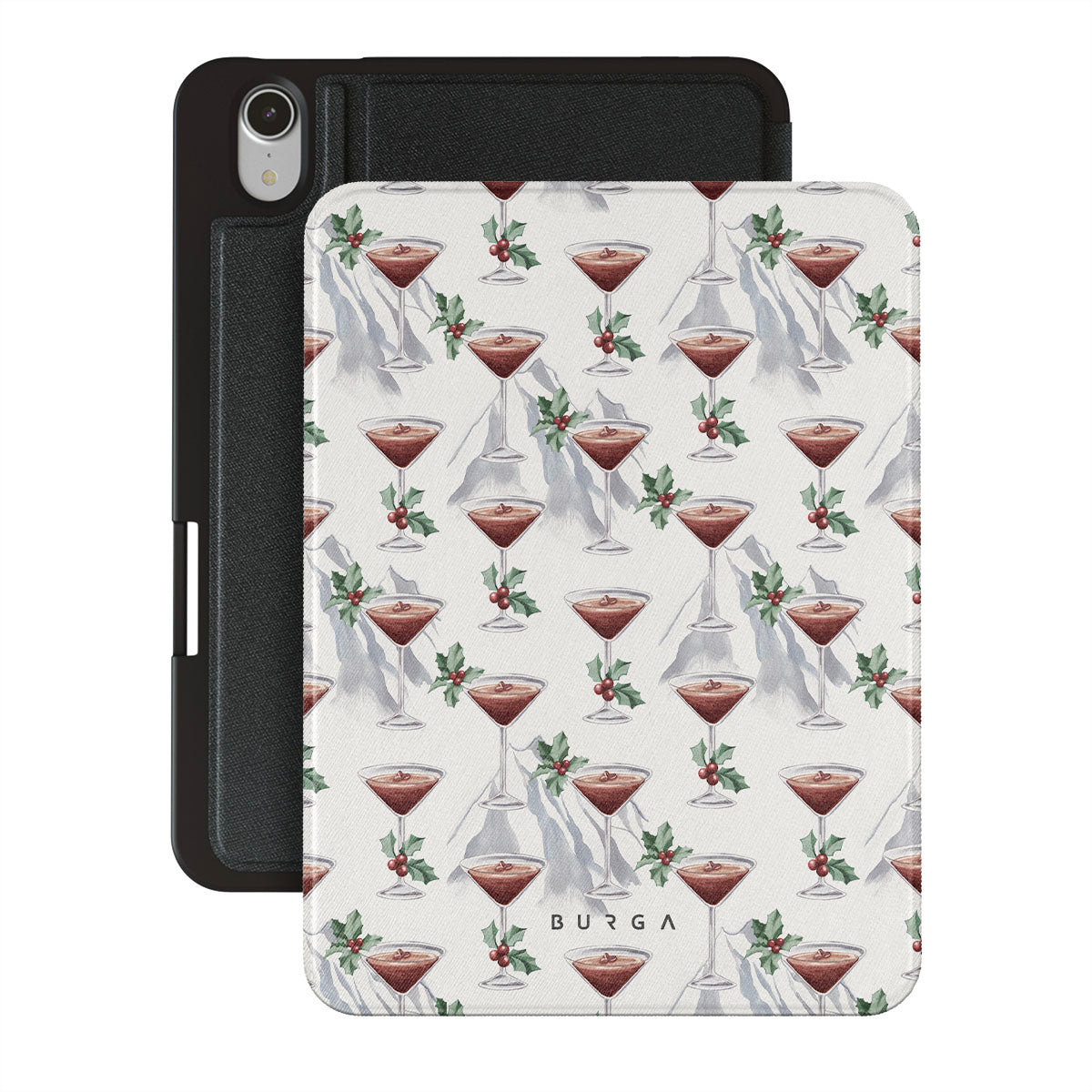En este diseño: copas de cóctel, martinis, hojas de acebo