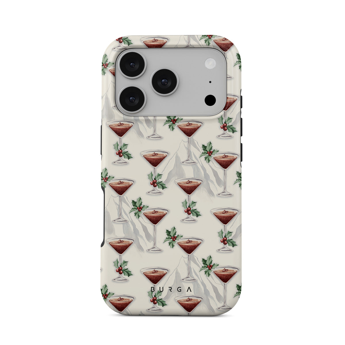 En este diseño: copas de cóctel, martinis, hojas de acebo