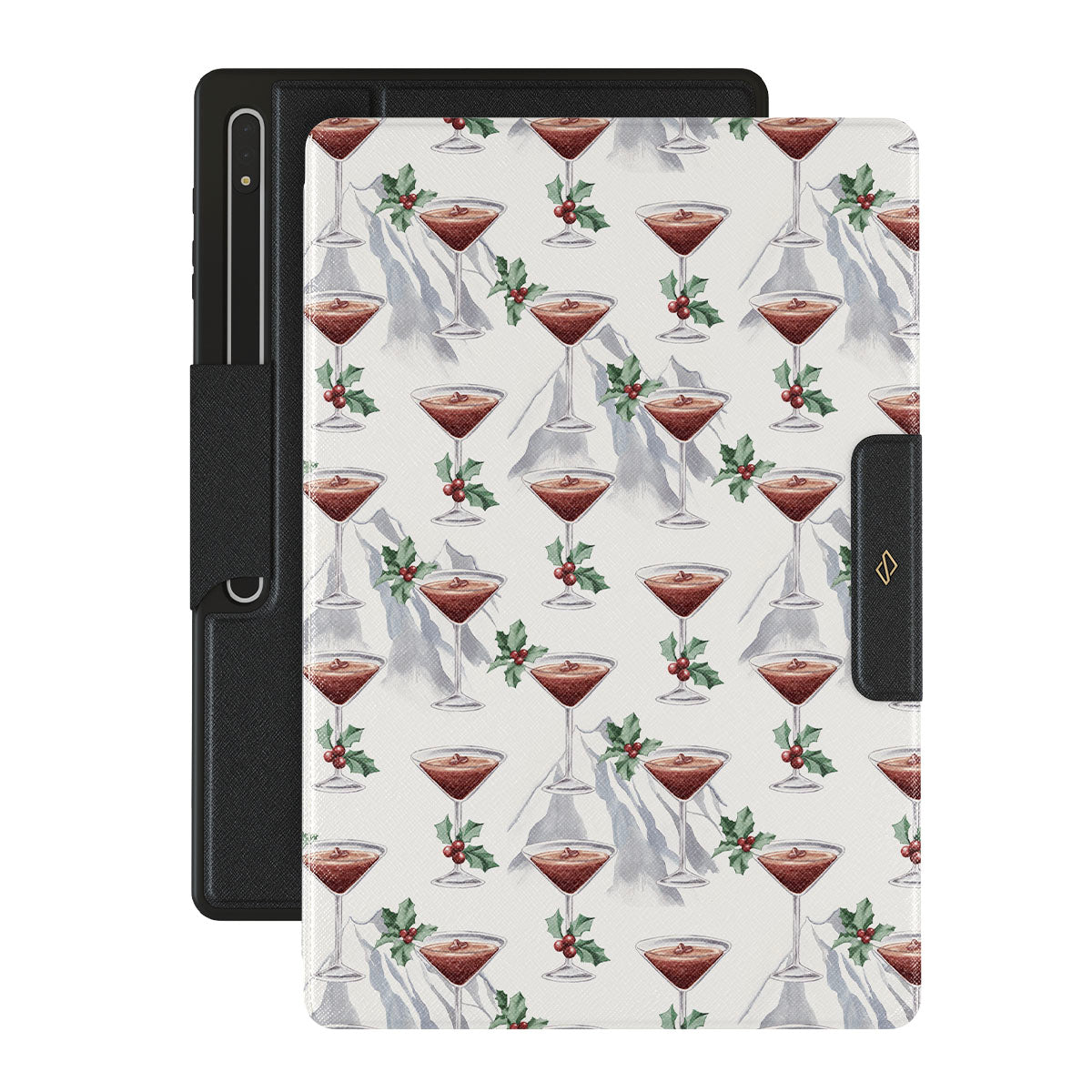 En este diseño: copas de cóctel, martinis, hojas de acebo