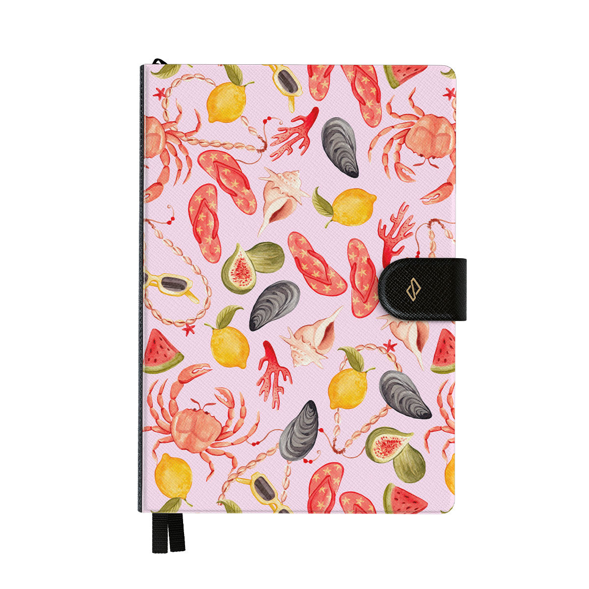 Envuelta en elegante cuero vegano saffiano y asegurada con un elegante cierre magnético, es lo suficientemente resistente como para soportar derrames de café y los pequeños errores de la vida.
