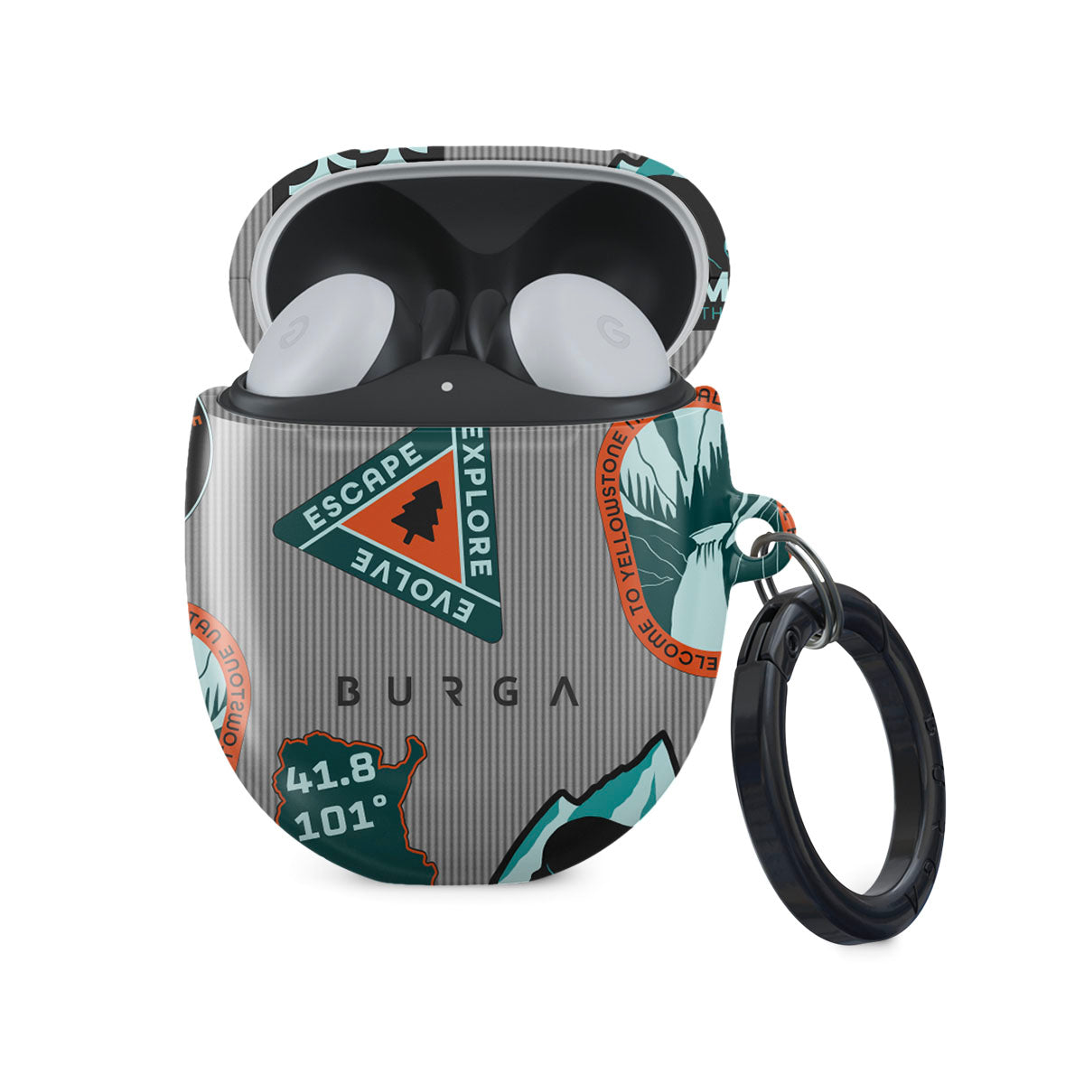 I was always loosing my earbuds but now with this case & keyring (and the finder tile I attached) I can always find them. It looks exactly like the picture, and I can still charge them through the case (and see the charge like that glow). Can't recommend highly enough. Just know that it ships from outside the US so will take a little time to get to you, but tracking numbers and updates were timely and accurate along the way.