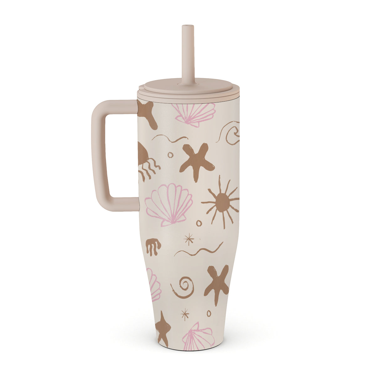 Este vaso de 40 oz/1.2 l mantiene tus bebidas calientes por 12 horas, frías durante todo el día y tu bolsa completamente seca gracias a una tapa de verdad hermética con popote. Cabe en el portavasos de tu coche, tiene un asa que se ajusta a ti a la perfección y está disponible en una paleta de colores que combinan con cualquiera de tus looks.