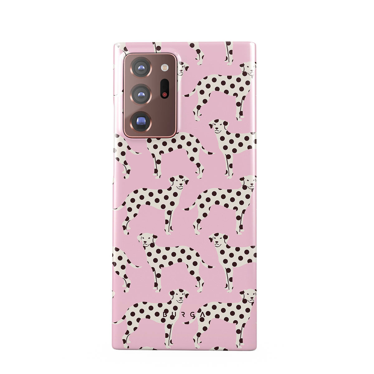 En este diseño: dálmatas sobre un fondo rosa pastel.