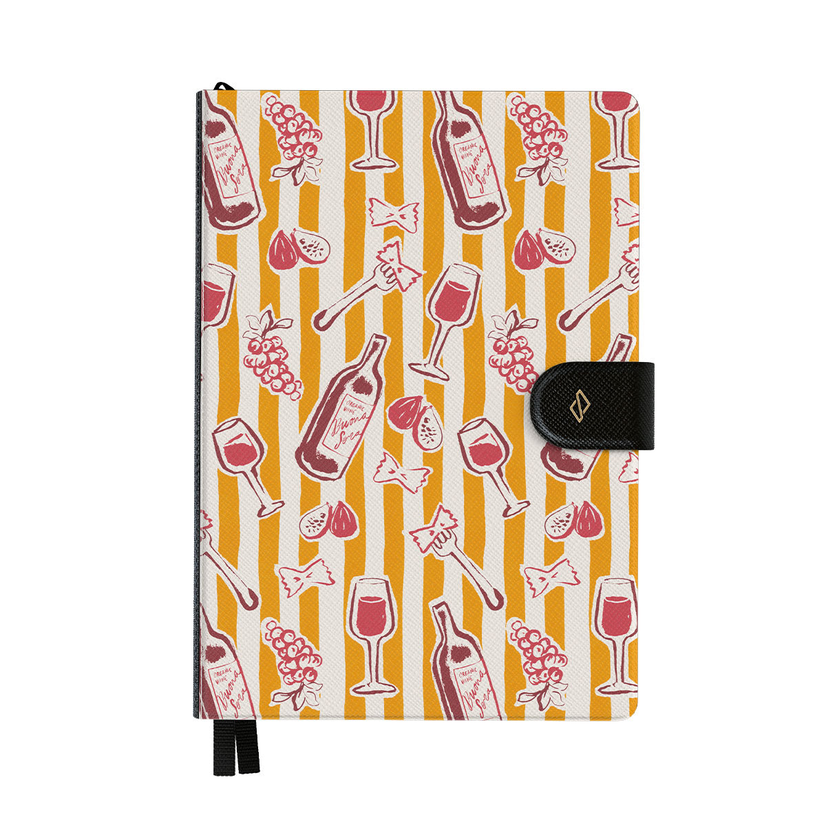 Envuelta en elegante cuero vegano saffiano y asegurada con un elegante cierre magnético, es lo suficientemente resistente como para soportar derrames de café y los pequeños errores de la vida.