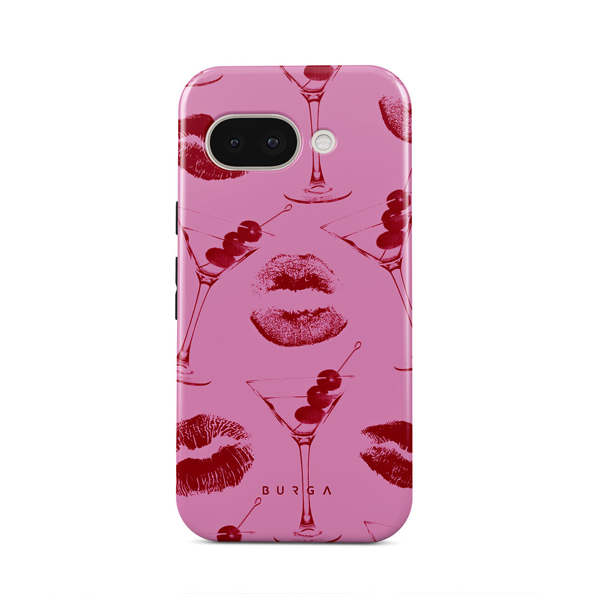 Este diseño presenta: labios rojos, besos, copas de cóctel, martinis.