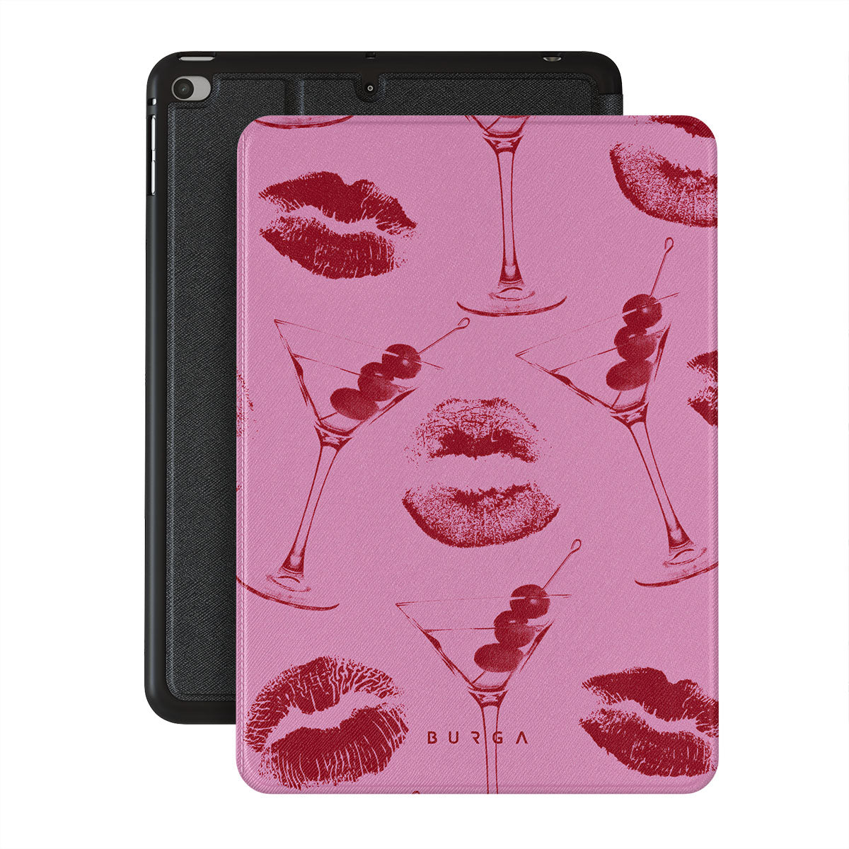 Este diseño presenta: labios rojos, besos, copas de cóctel, martinis.