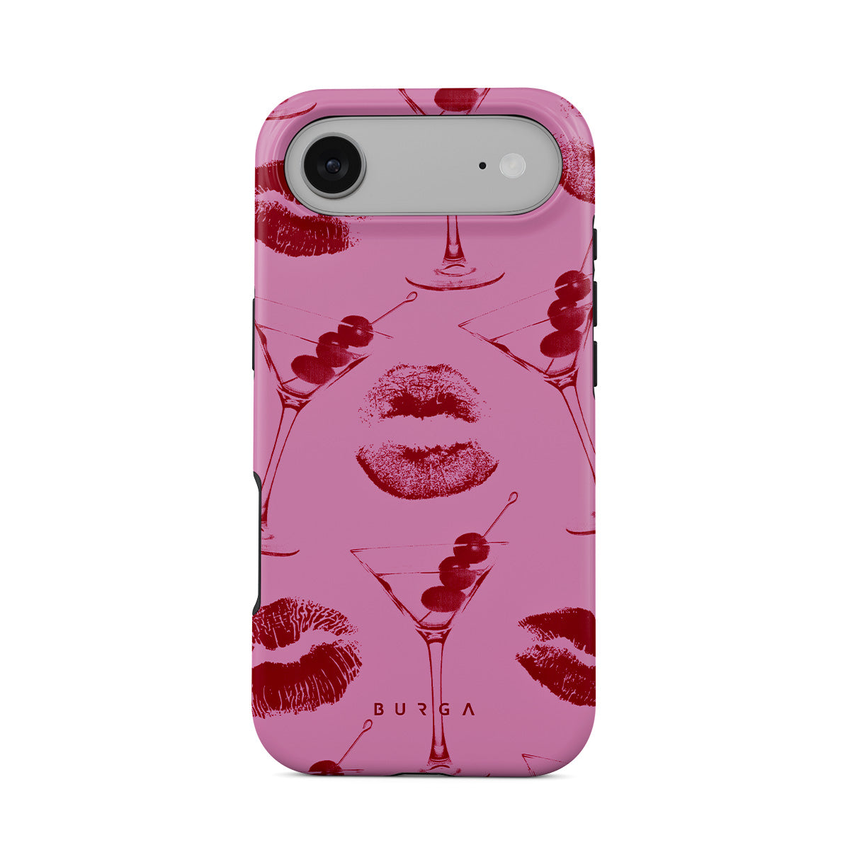 Este diseño presenta: labios rojos, besos, copas de cóctel, martinis.