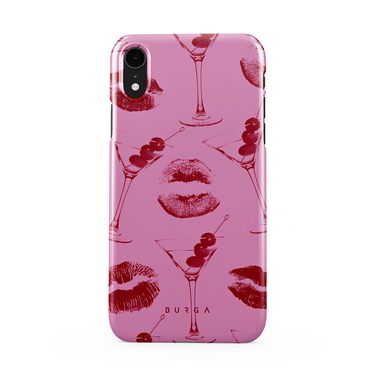 Este diseño presenta: labios rojos, besos, copas de cóctel, martinis.