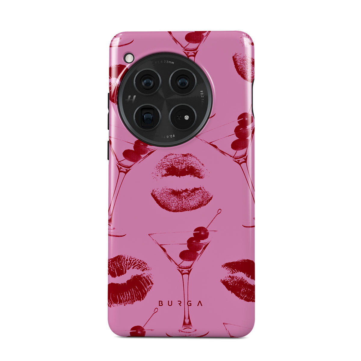 Este diseño presenta: labios rojos, besos, copas de cóctel, martinis.