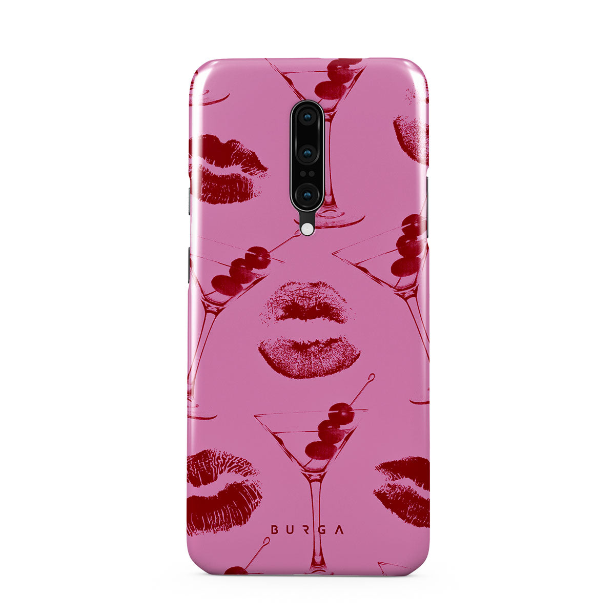 Este diseño presenta: labios rojos, besos, copas de cóctel, martinis.