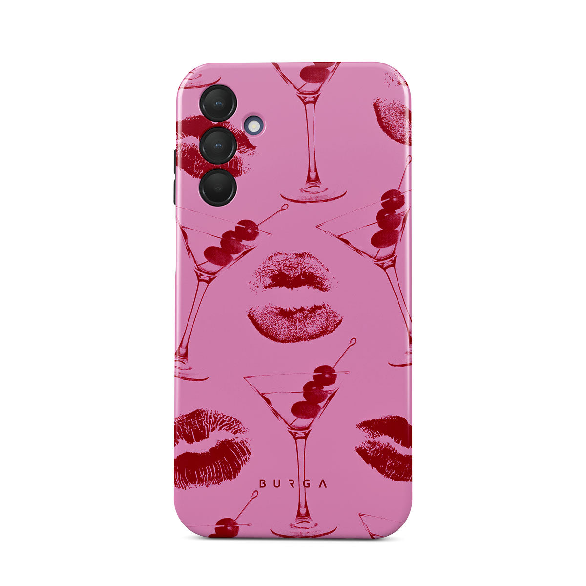 Este diseño presenta: labios rojos, besos, copas de cóctel, martinis.