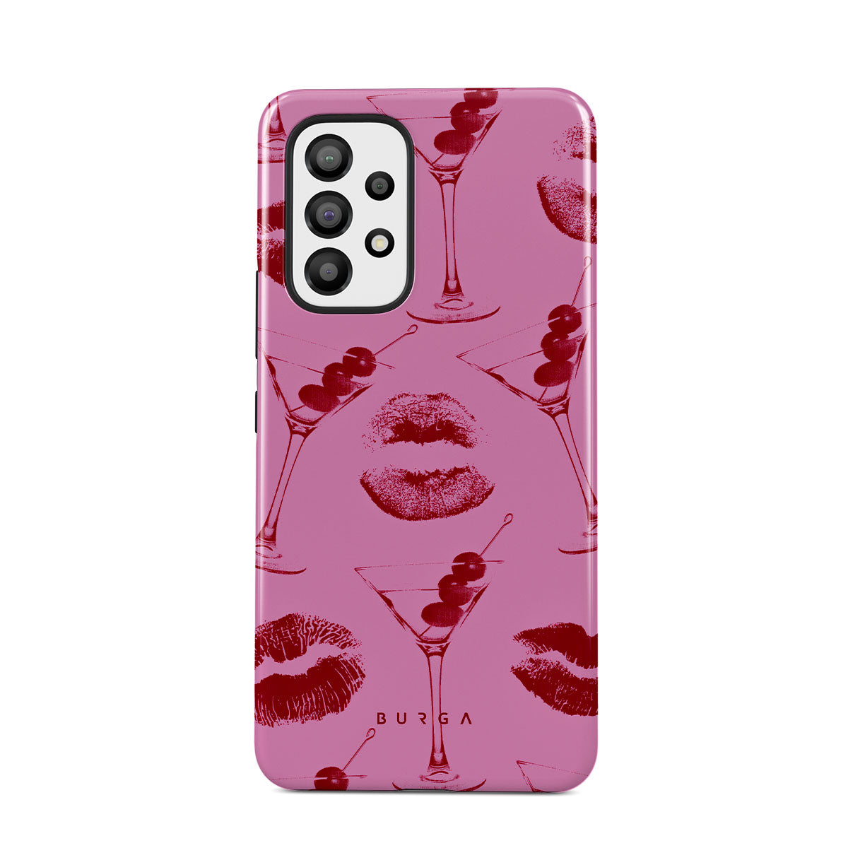 Este diseño presenta: labios rojos, besos, copas de cóctel, martinis.
