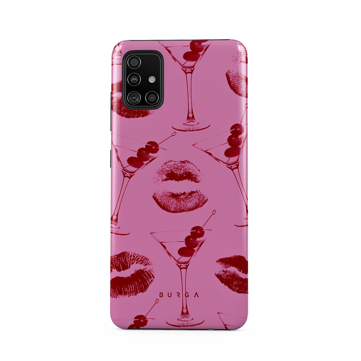 Este diseño presenta: labios rojos, besos, copas de cóctel, martinis.