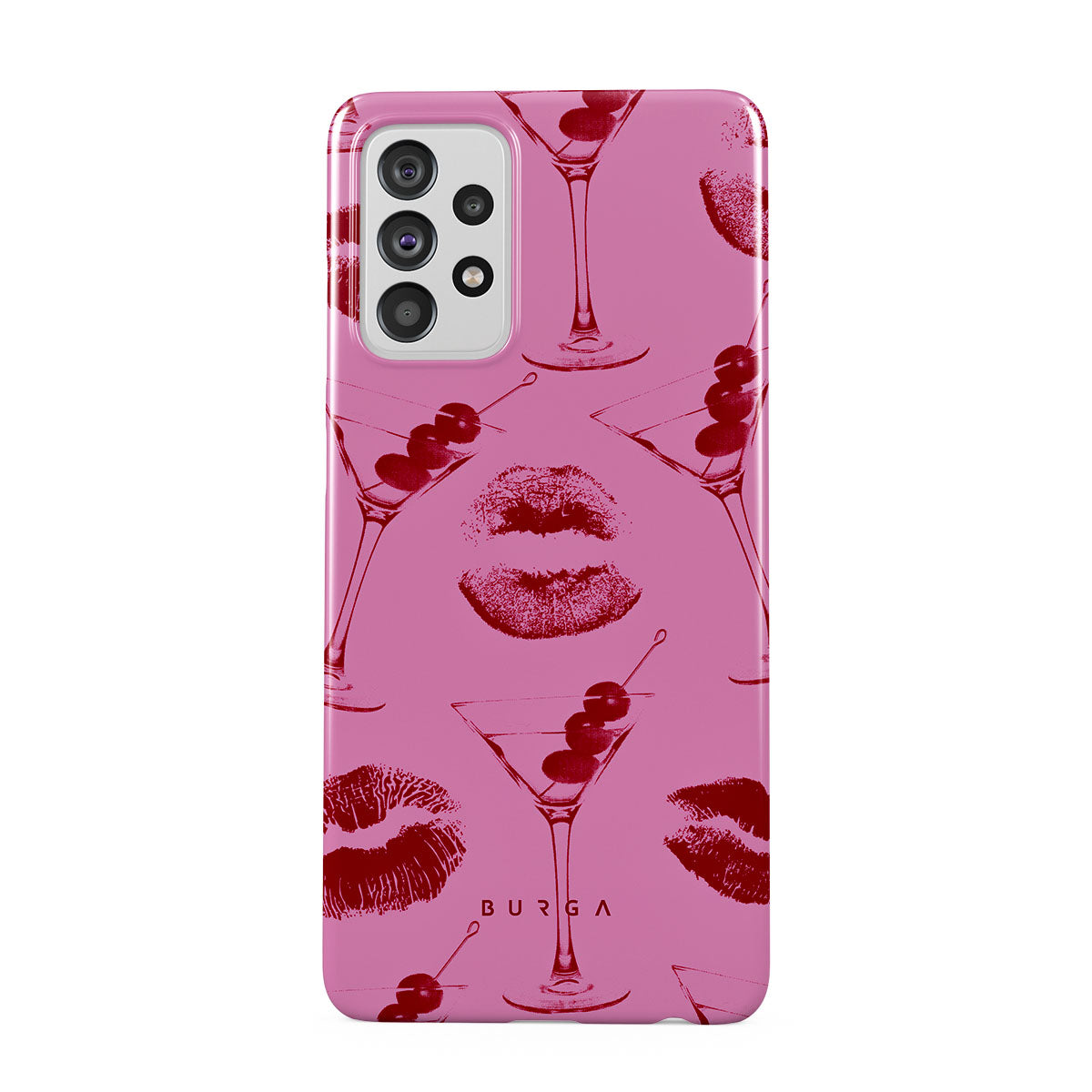 Este diseño presenta: labios rojos, besos, copas de cóctel, martinis.