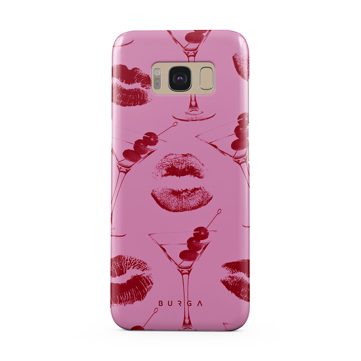 Este diseño presenta: labios rojos, besos, copas de cóctel, martinis.