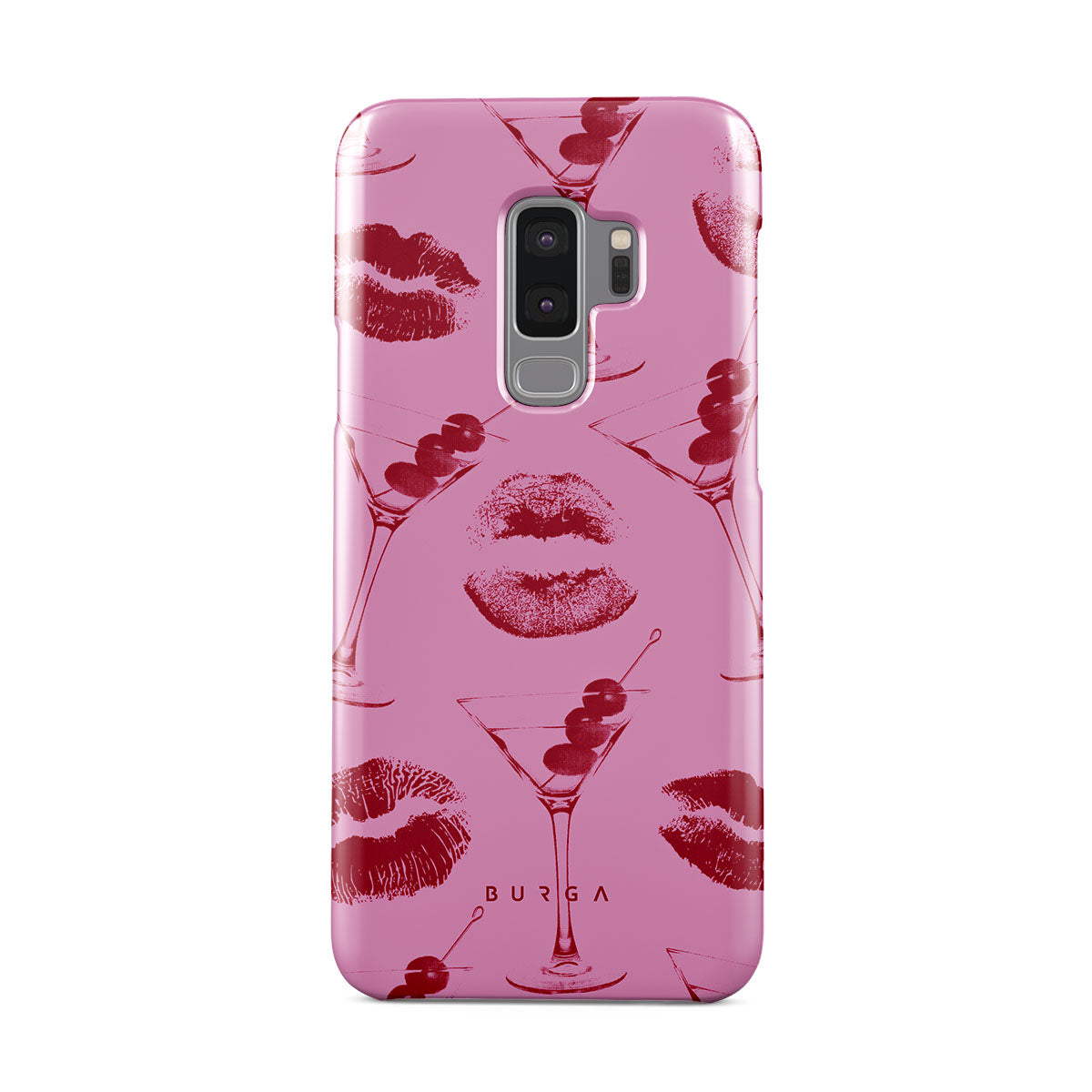 Este diseño presenta: labios rojos, besos, copas de cóctel, martinis.
