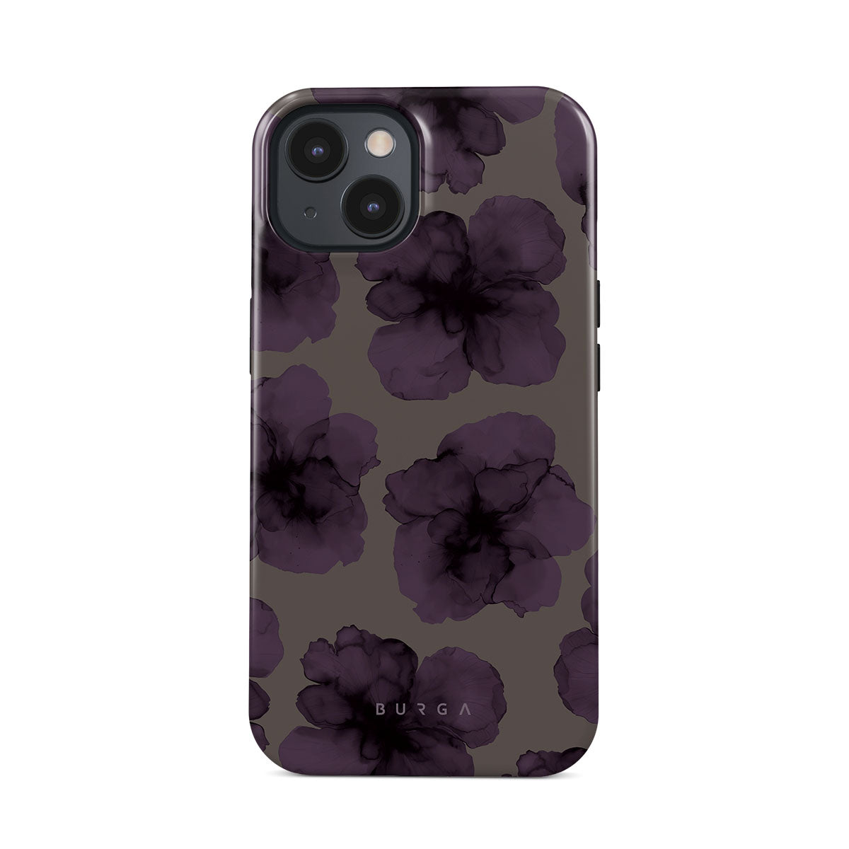 En este diseño: flores oscuras, flores moradas, pétalos violetas.