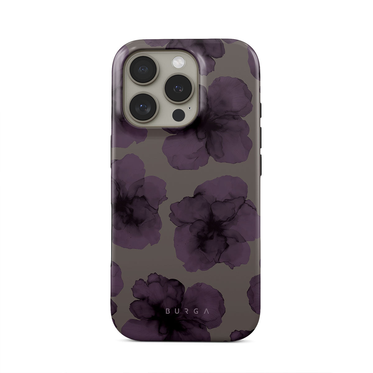 En este diseño: flores oscuras, flores moradas, pétalos violetas.