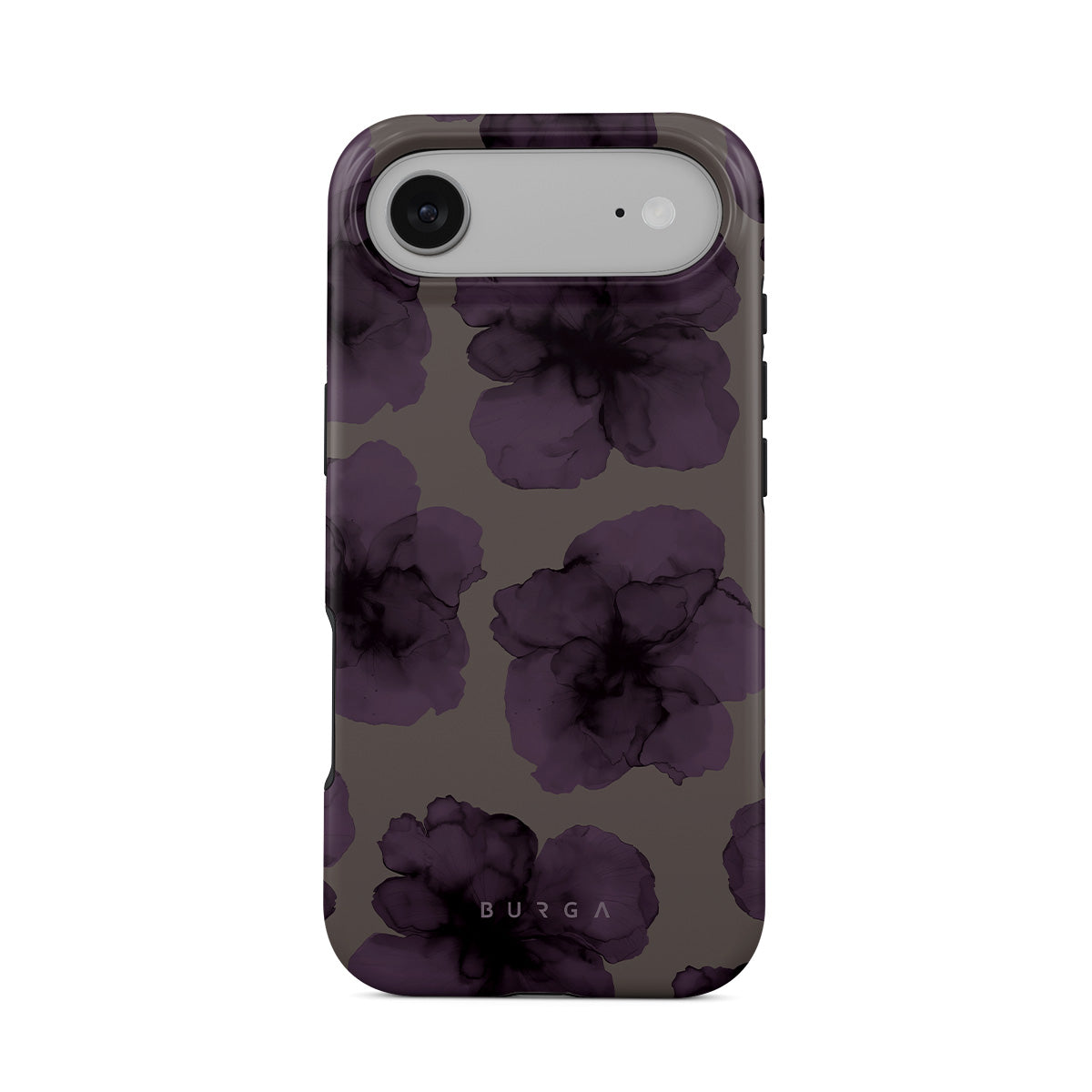 En este diseño: flores oscuras, flores moradas, pétalos violetas.