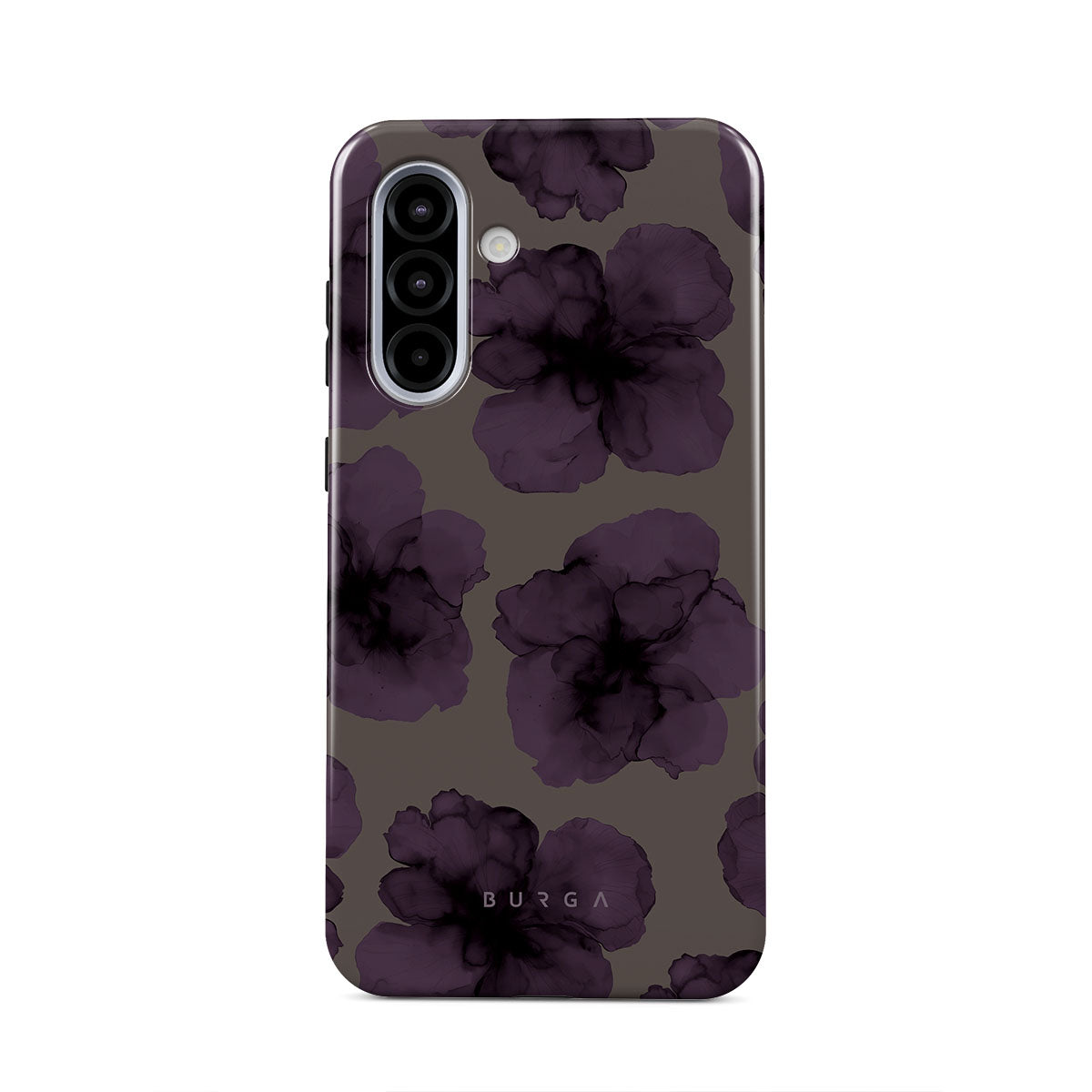 En este diseño: flores oscuras, flores moradas, pétalos violetas.