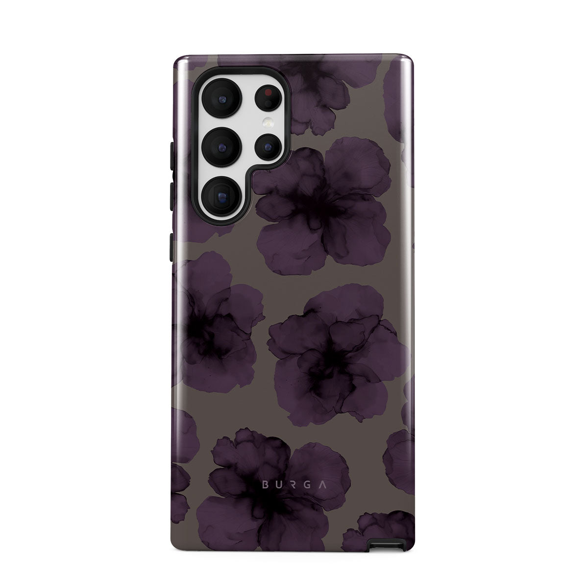 En este diseño: flores oscuras, flores moradas, pétalos violetas.