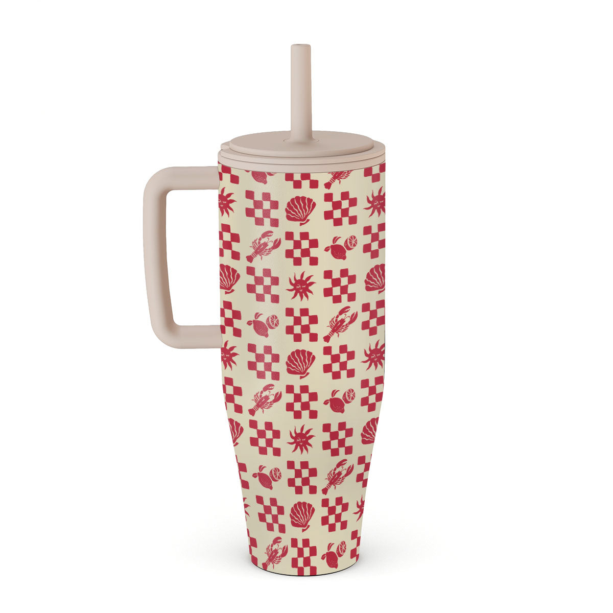 En este diseño: patrones de cuadros rojos, conchas, langosta, motivos italianos.