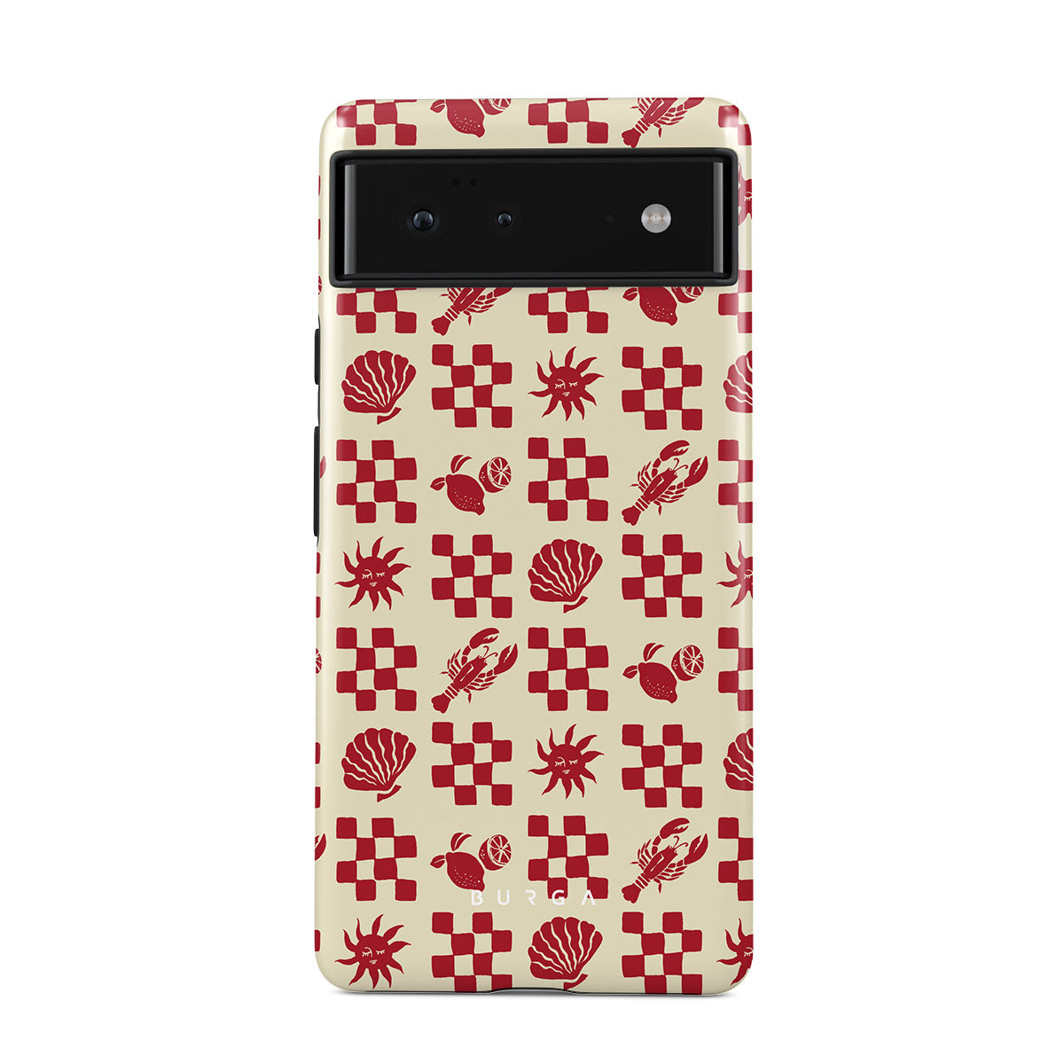 En este diseño: patrones de cuadros rojos, conchas, langosta, motivos italianos.