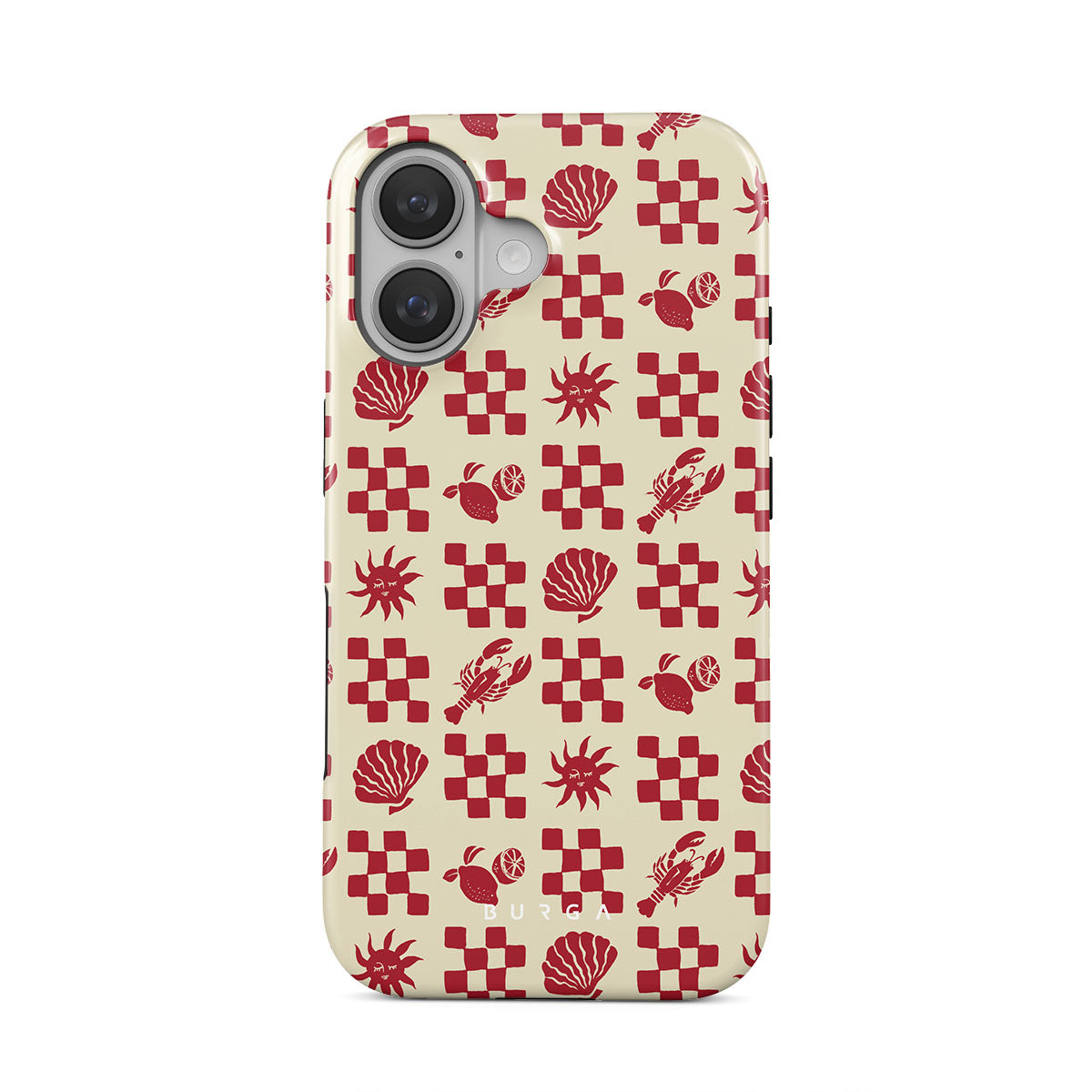 En este diseño: patrones de cuadros rojos, conchas, langosta, motivos italianos.