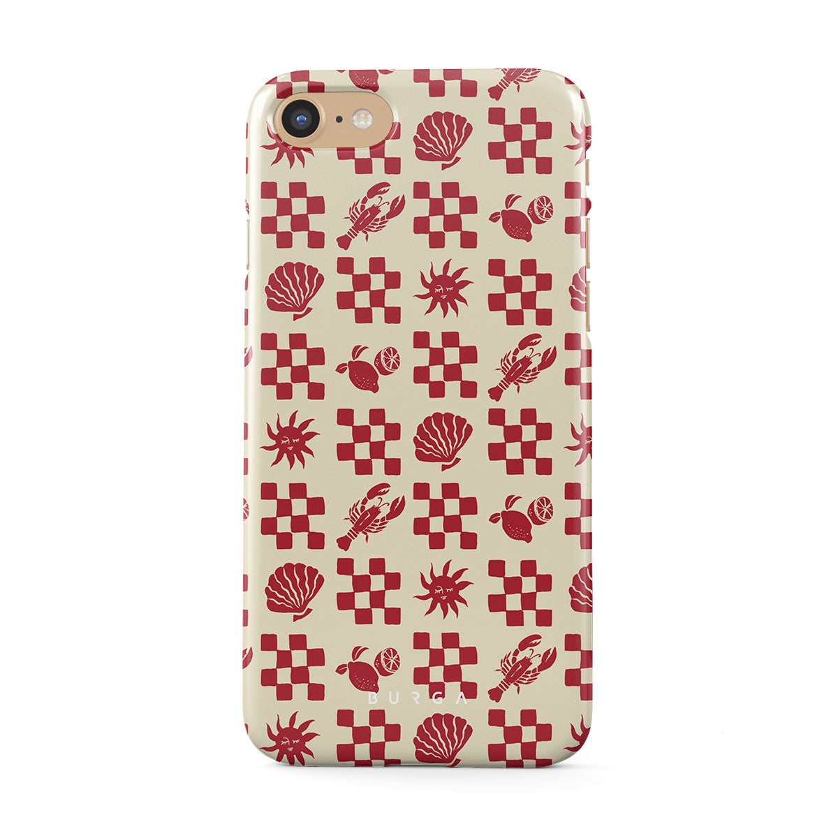 En este diseño: patrones de cuadros rojos, conchas, langosta, motivos italianos.