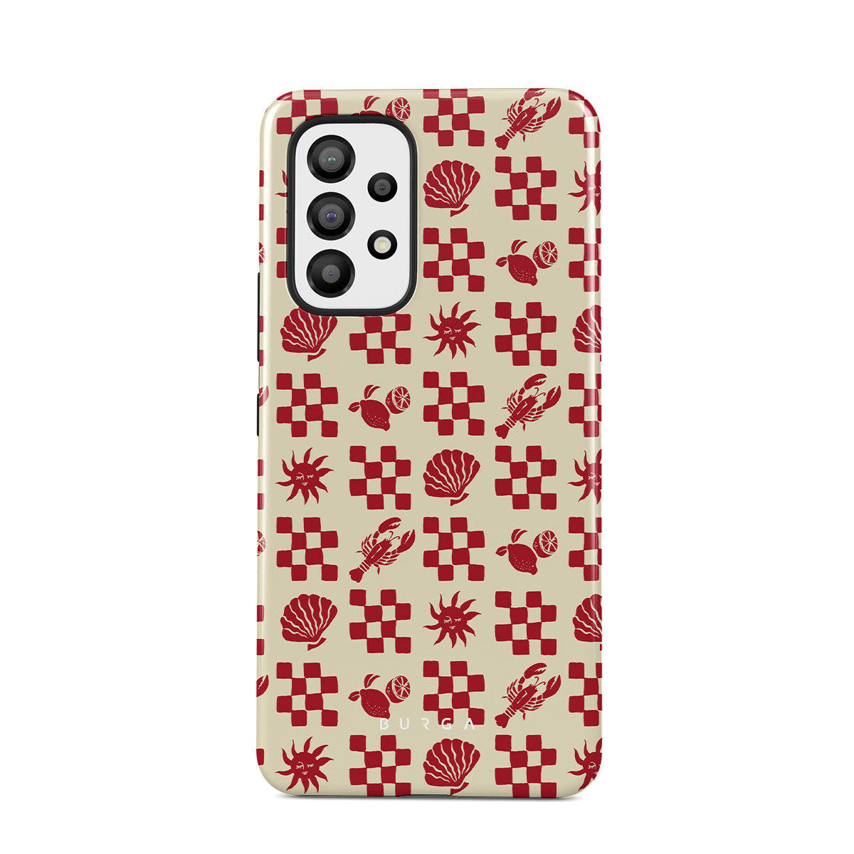 En este diseño: patrones de cuadros rojos, conchas, langosta, motivos italianos.