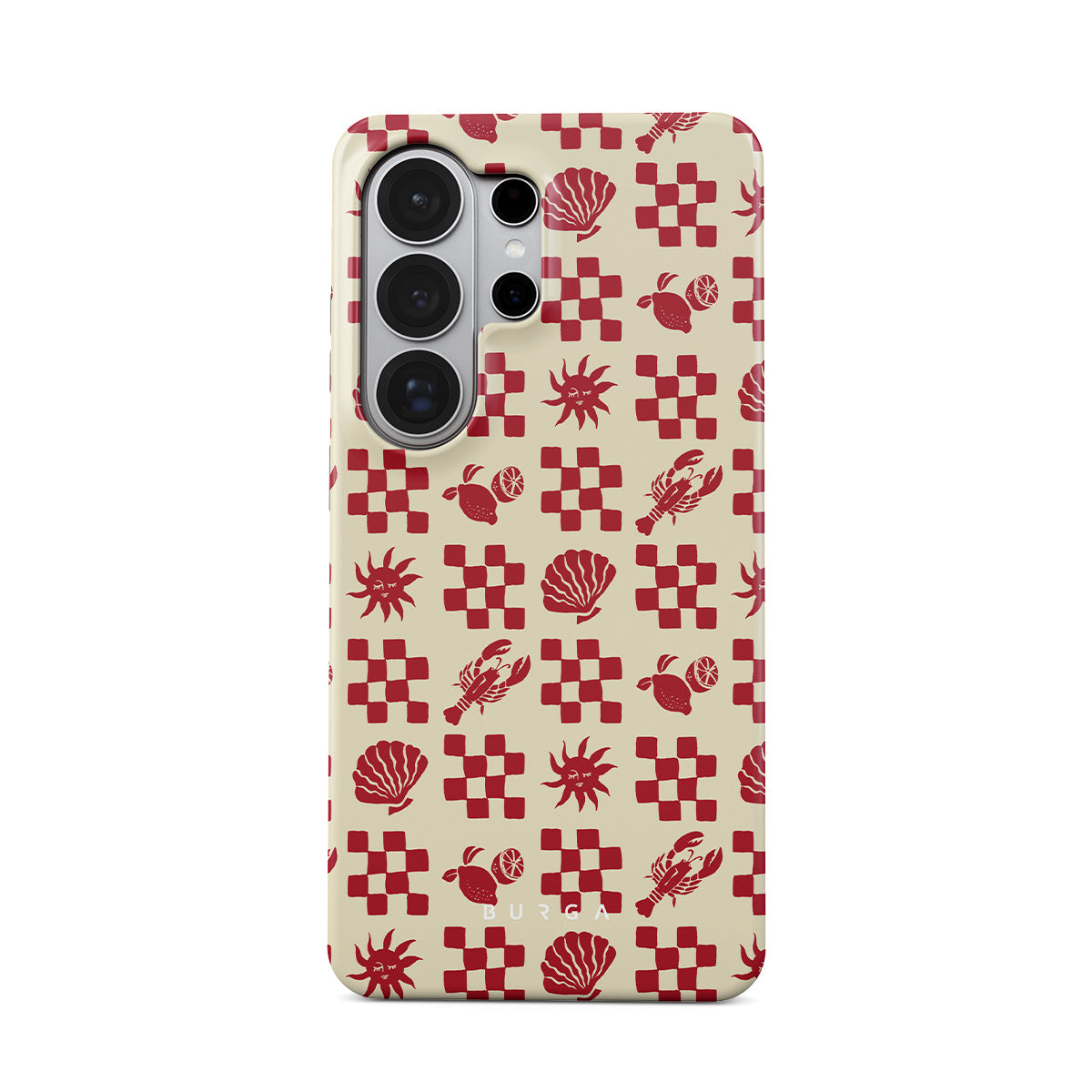 En este diseño: patrones de cuadros rojos, conchas, langosta, motivos italianos.