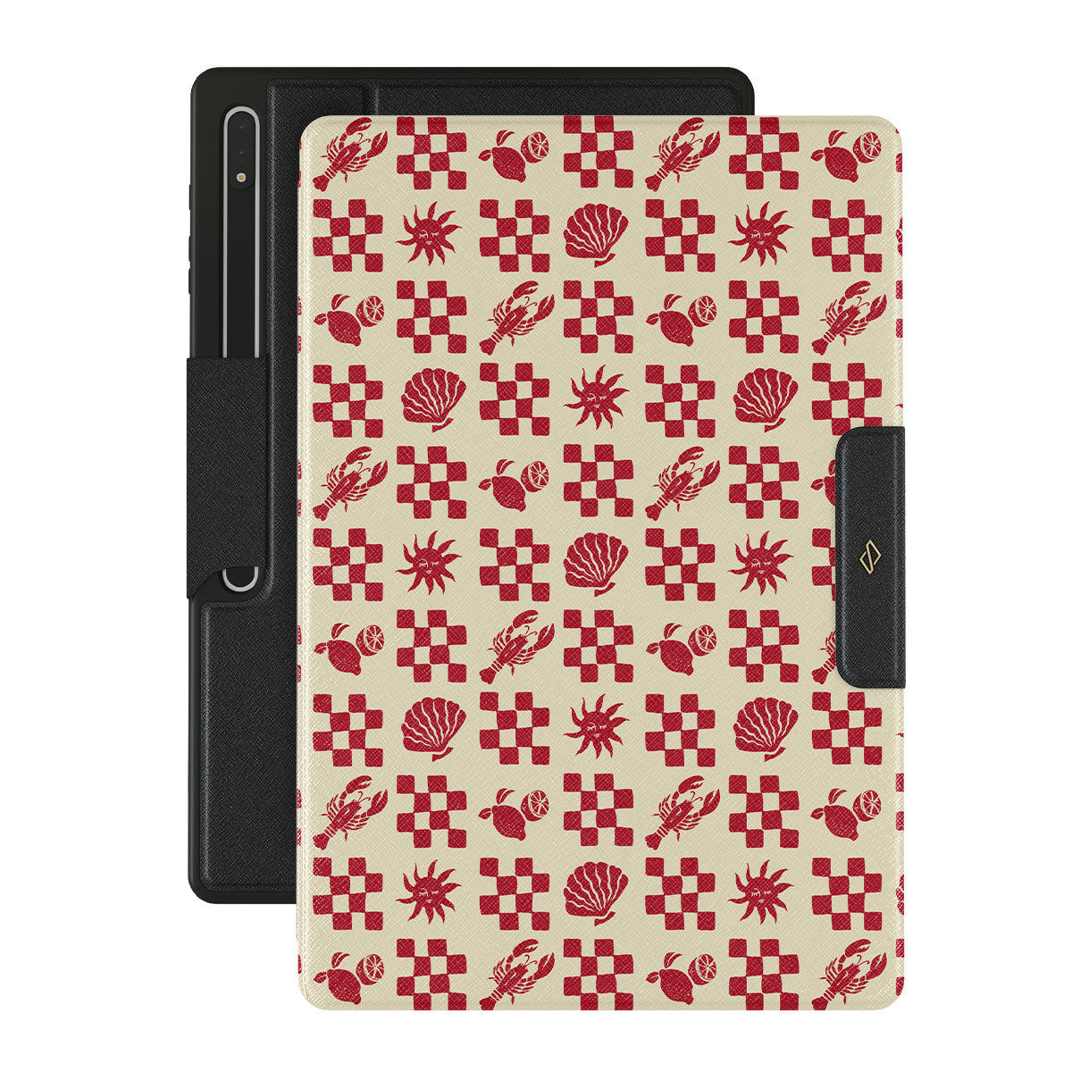 En este diseño: patrones de cuadros rojos, conchas, langosta, motivos italianos.